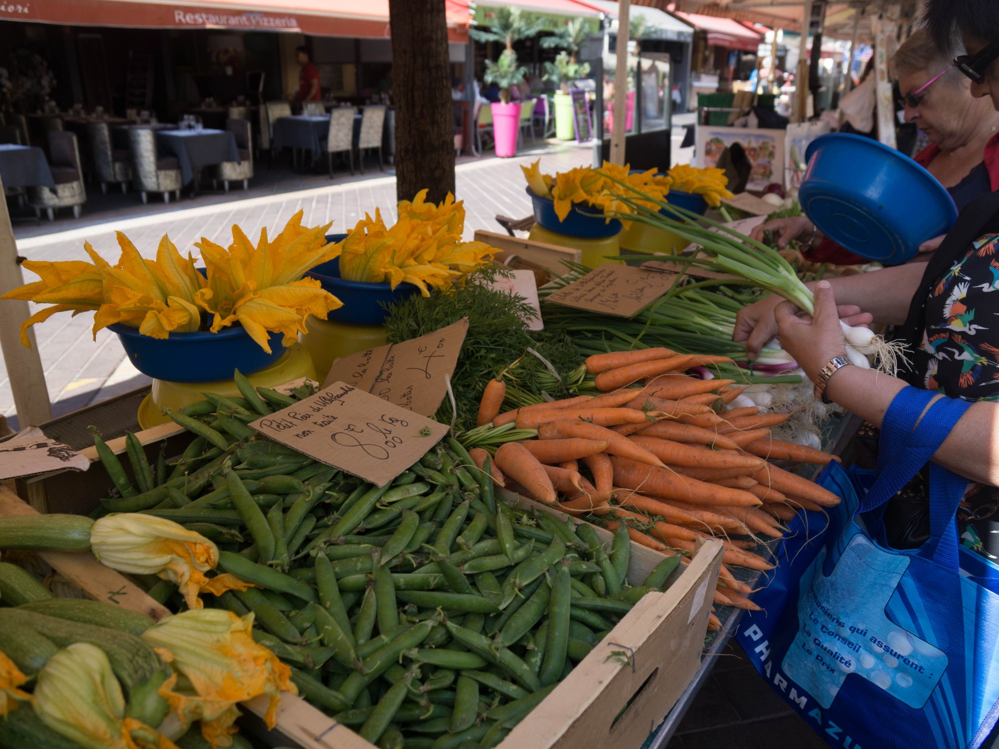 Today I had a bit of a surprise for Becky as I had booked a few months ago a cooking class and market tour with a lady named Rosa Jackson who is a food blogger and writer and 10 year Nice resident. We met up with Rosa and the rest of the class (2 New Yorkers, 1 Californian, 1 Australian, and 1 from South Africa) and Rosa began to teach us about the history of Nicoise cuisine and general info on selecting items from the market. She showed us ways to tell local versus imported food and also who were direct farmers selling their goods versus the warehouse items, etc. After a stroll through the market where she selected items for our cooking menu we then visited a bakery, wine shop and fromagerie (cheese shop) again selecting items we would use for the meal.