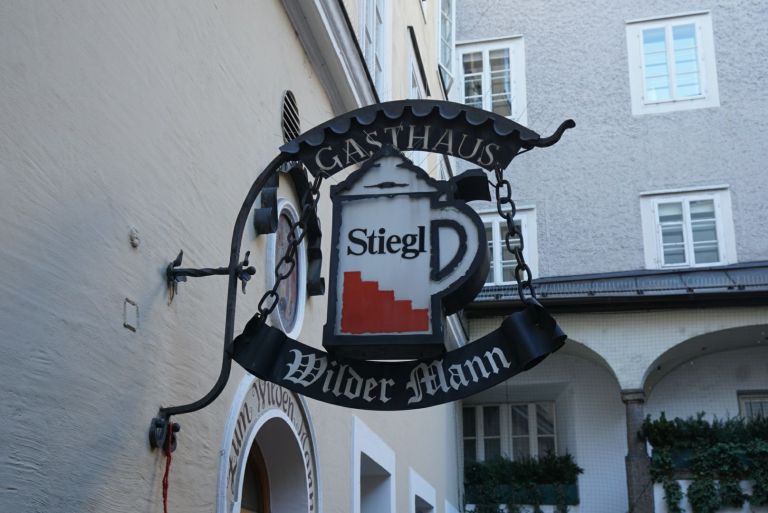 Once in Salzburg, Becky had read up on the buses and we quickly got on the right bus and headed to the old town to start our walking tour. We saw several churches and an interesting cemetery with metal headstones. We saw the shopping street that has been there since medieval times and still has the ornate signs to tell what each shop does.