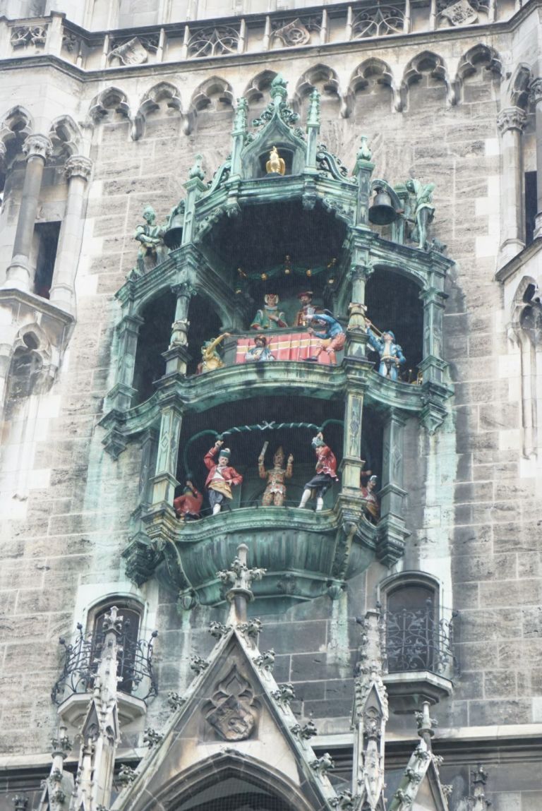 The glockenspiel plays at 11 and noon each day and we had missed it on our previous days in Munich. It’s a two part story the top is a wedding and includes a joust!
