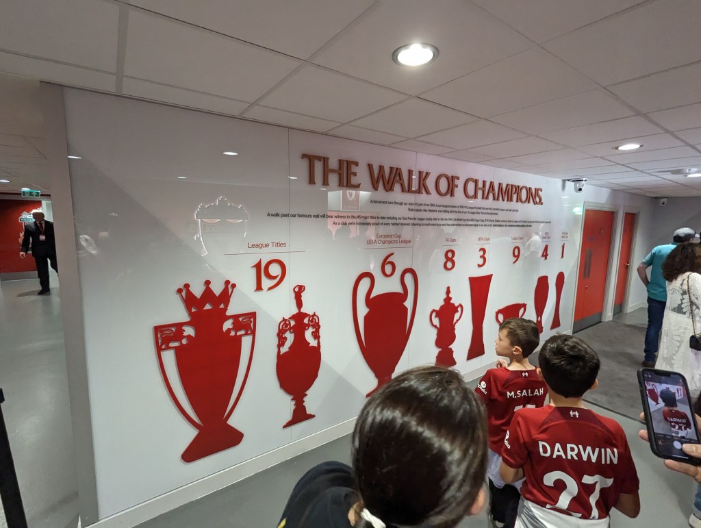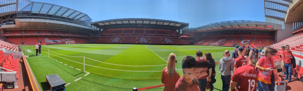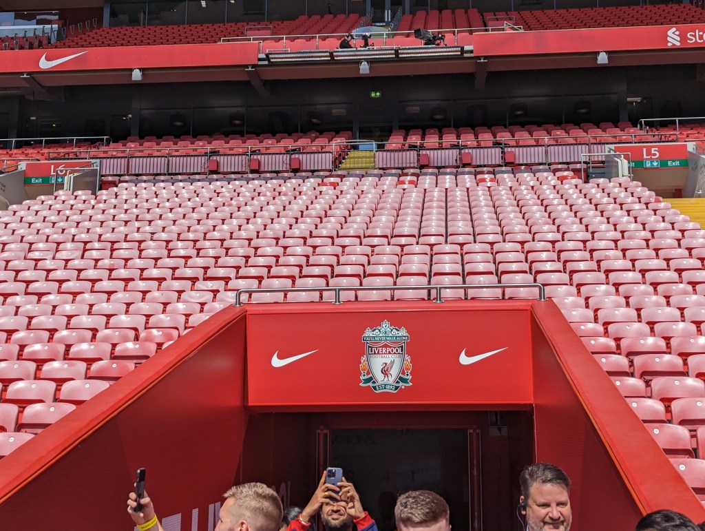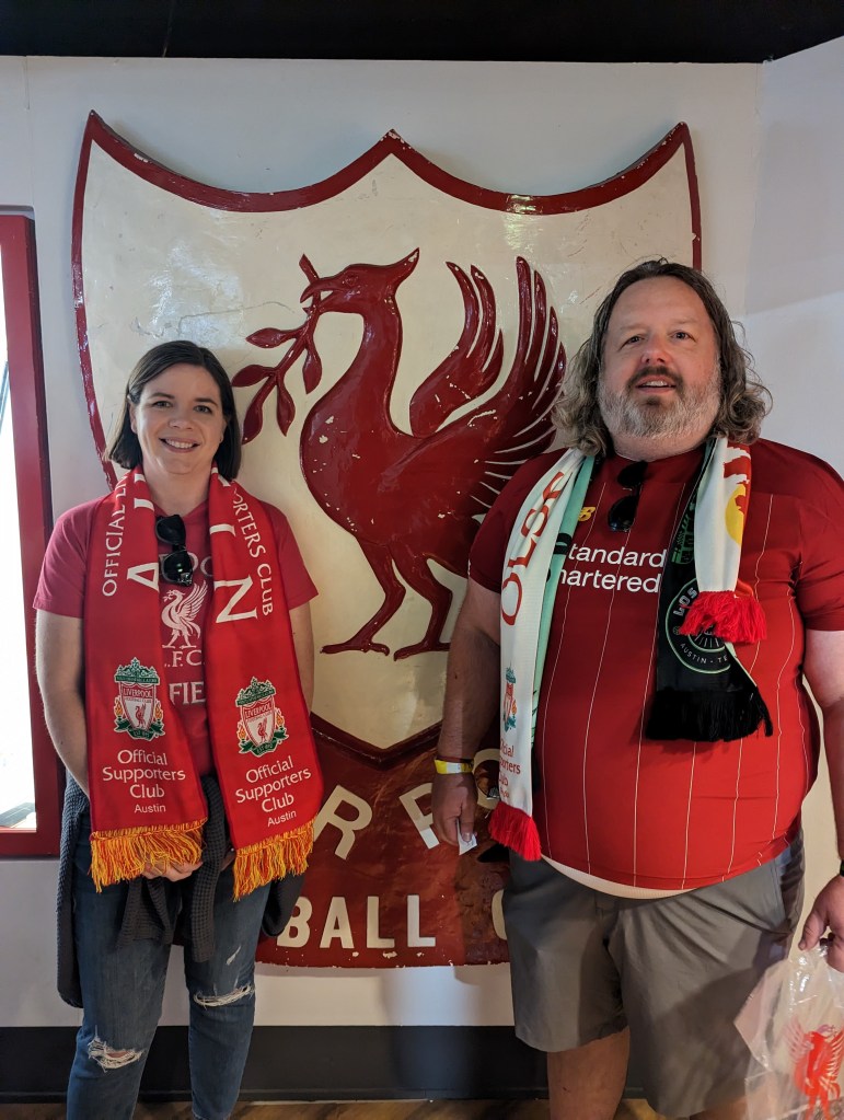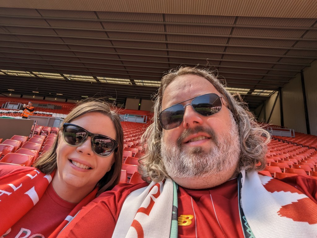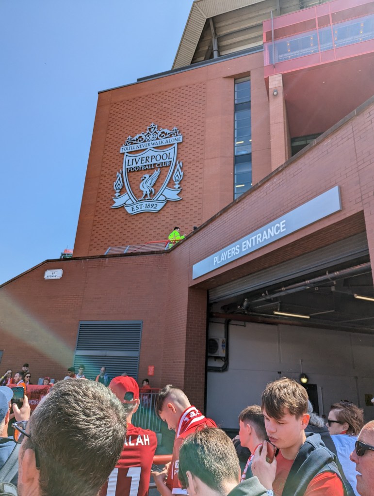 I am mostly bandwagonning on Cline’s fandom when it comes to Premier League teams as before Austin FC my main soccer knowledge was from the US National teams and the World Cup every 4 years. Since moving to Austin though I found that they had a Liverpool supporters group and i joined it early on to try and meet some people and learn more about Liverpool. I’ve gone to a few events with them but honestly hadn’t been greatly involved. About the time we had decided we couldn’t do this trip over Christmas I got an email from the Liverpool supporters groups listing games they had a chance to get tickets for and to register our interest. I let them know that the May 20th game against Aston Villa would work for us and we decided to plan our Scotland trip around that date if we were lucky enough to get them. A bit later they let us know we had gotten the tickets and we started planning this trip in earnest. Well today was the day that we would get to visit the legendary Anfield football stadium!