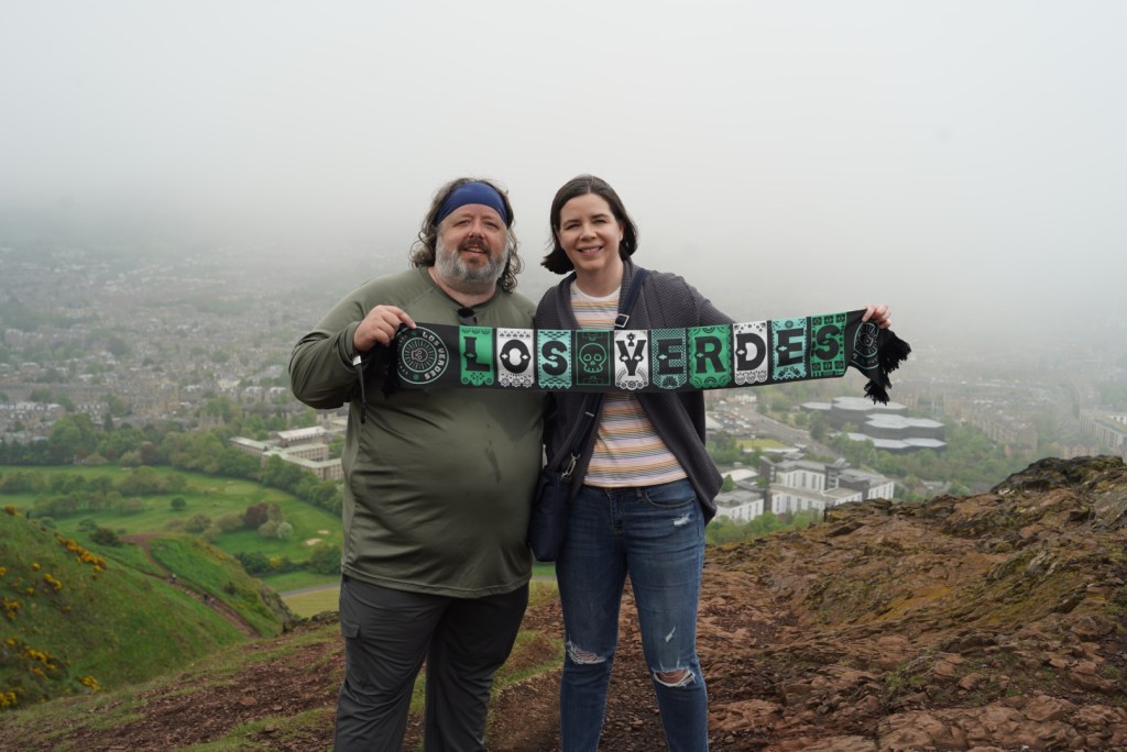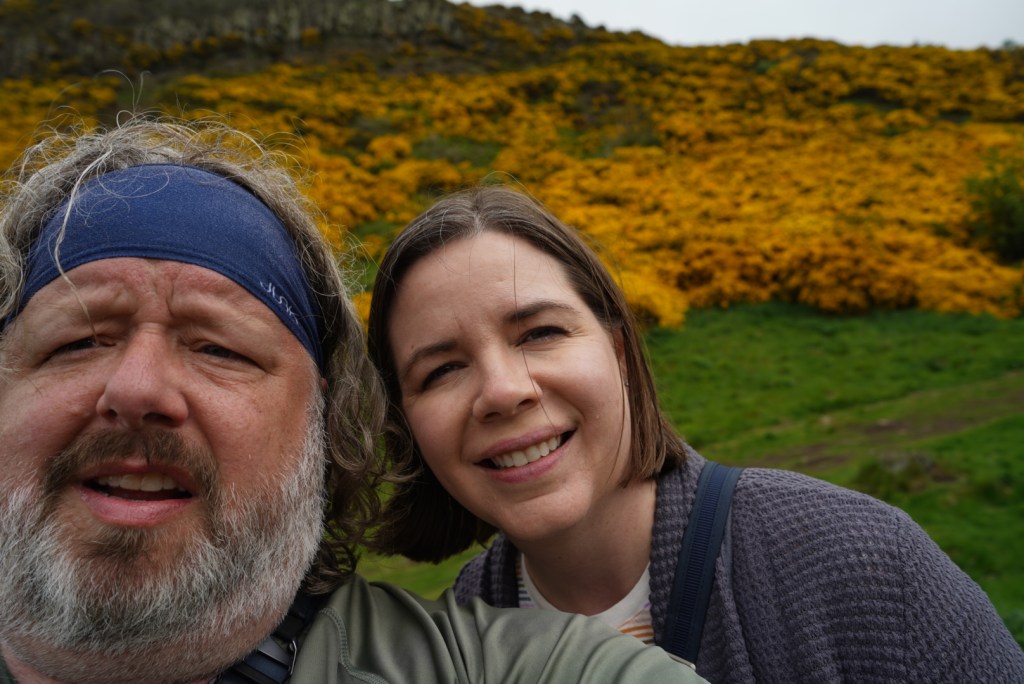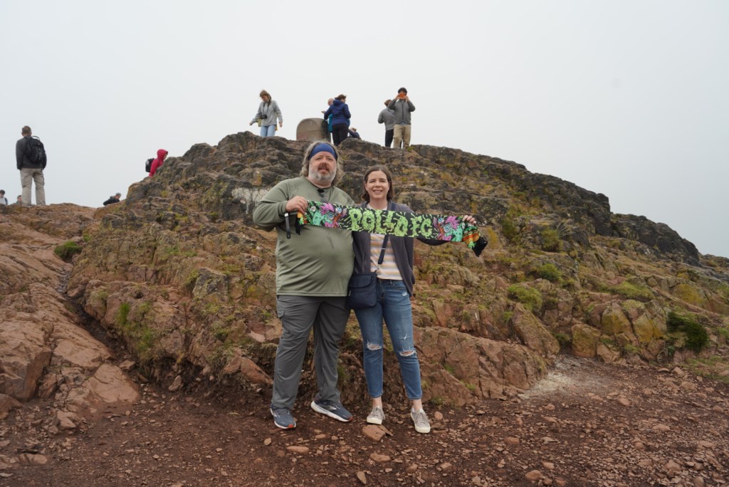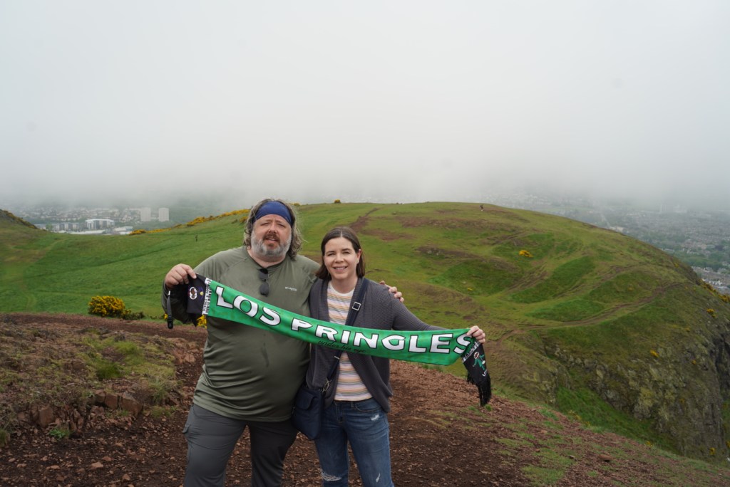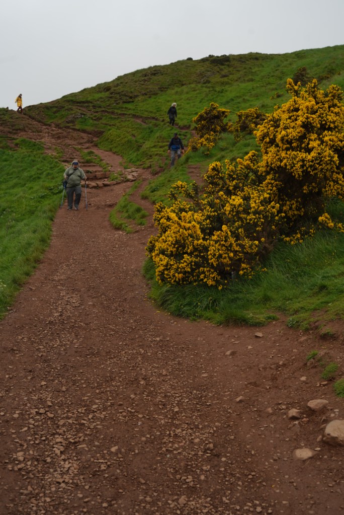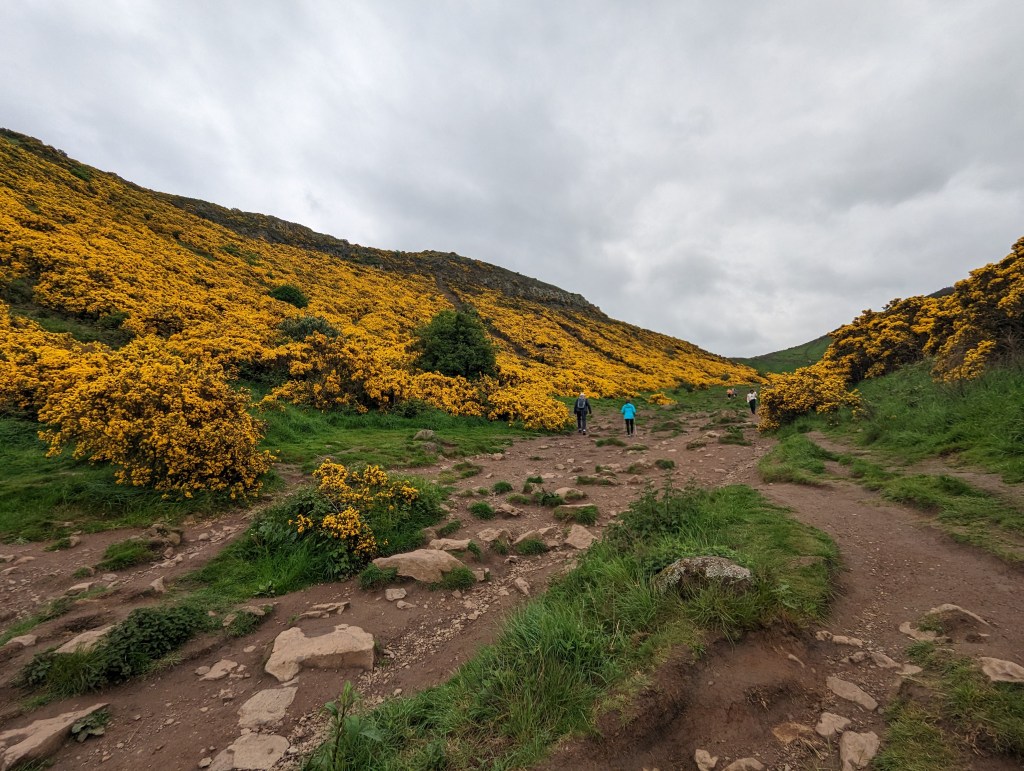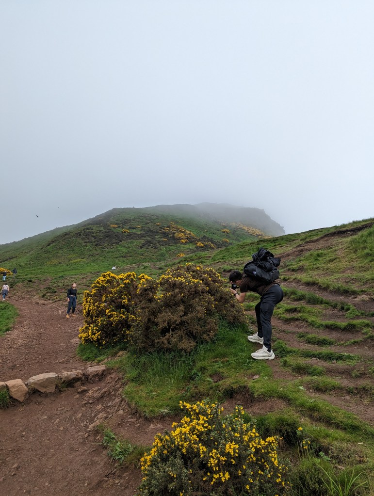 After getting to the bottom at Holyrood palace we turned left into the park area and we’re greeted by our first real sight of Arthur’s seat. Arthur’s seat is an ancient extinct volcano and the highest point in Edinburgh. We took the relatively easier way up but it was a mile or more of basically all uphill hiking. I definitely had to pace myself and take breaks every steeper part but we finally made it up. Becky was much more ready for this day and i slowed her down immensely. The views when I did stop and rest were beautiful. Everything is so green and the yellow gorse flowers were in full bloom.