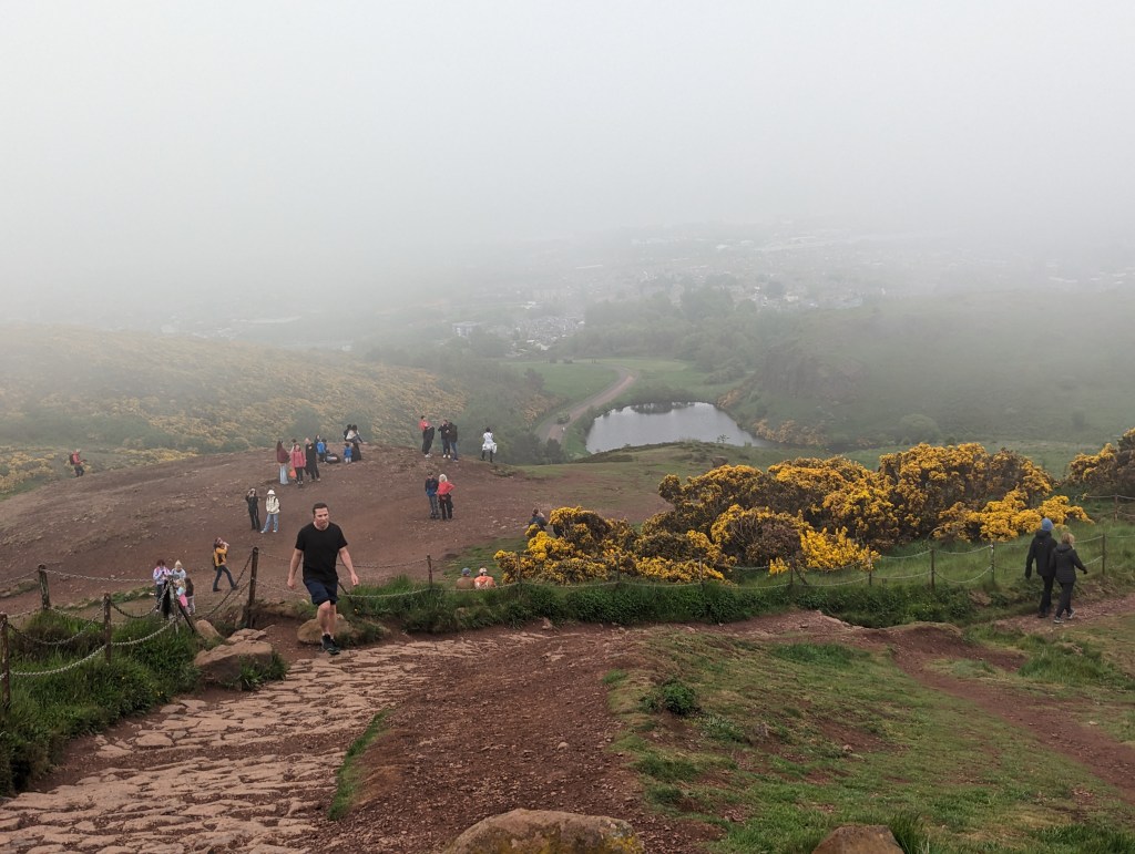 By the time we reached the summit some fog had rolled in and that somewhat limited the views but we could see all of the old town and much of Edinburgh in all directions.