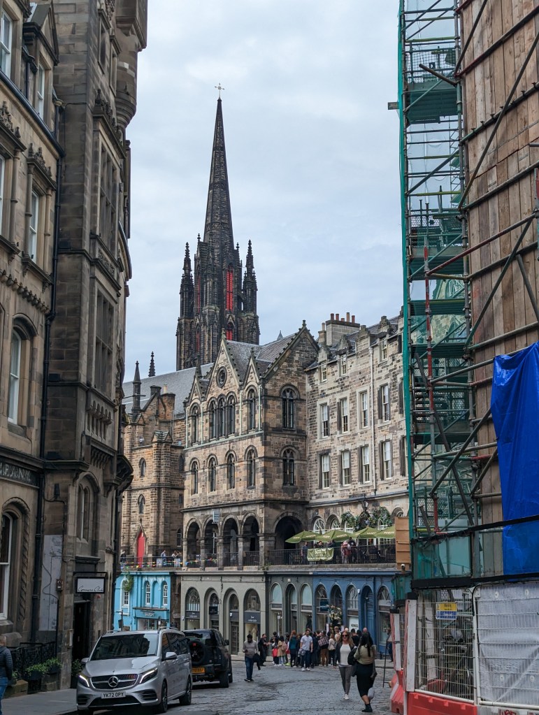 I knew when we planned this trip that we would have this day but the reality always hits a little differently. The plan for today was to exchange our tickets for Edinburgh castle that we couldn’t use yesterday due to the train delays and then walk the Royal Mile and then hike up to Arthur’s seat. We started off looking for breakfast but our first place was booked until 11 so we walked over to the castle to exchange our tickets for later in the day and got tickets for 330p. As we started down the Royal Mile we saw a little coffeeshop on a side street and grabbed a sandwich and pastry and coffee. We continued down the Royal mile listening to our Rick Steves audio walking tour.