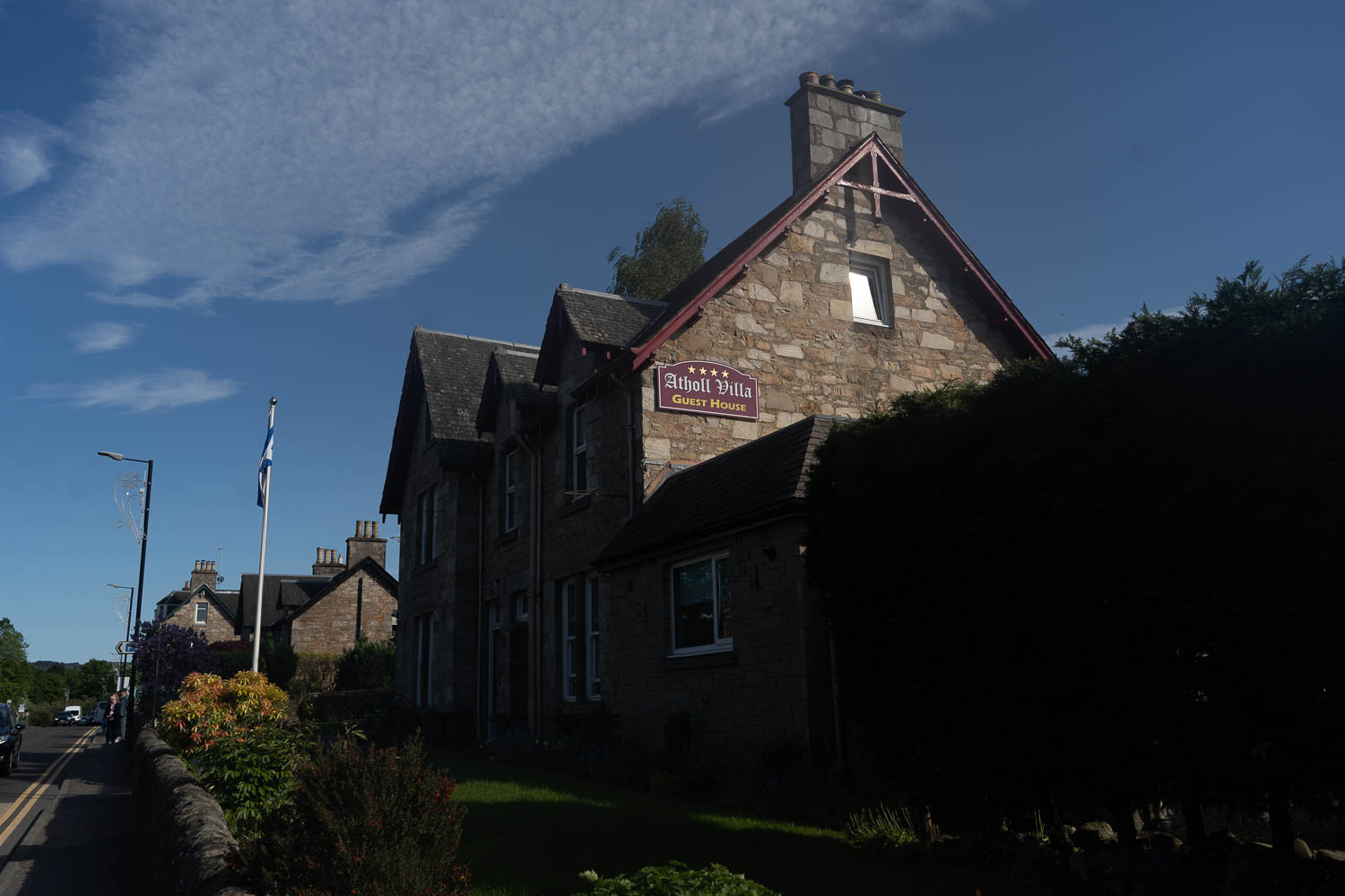 He is also famous for working closely with Newton and Leibniz on the foundations of calculus and he also wrote the first calculus textbook. After the tour finished we grabbed lunch at a pub across the street and are about to head to Pitlochry. The drive to Pitlochry was pretty uneventful but absolutely beautiful scenery as you went from kind of coastal lowland rural to the start of the lower highlands in Pitlochry. Pitlochry is mostly a tourist town serving as a central jumping off point for lots of day trip activities in central Scotland, like our trip to Balmoral tomorrow. We got to our little B&B and checked in and we got lucky with our room placement since we are only here one night as we are on the first floor right by the back door to the parking area.
