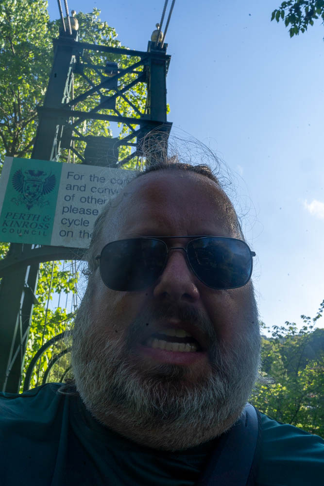 We also saw at least one guy fly-fishing so this might be Loren’s spot. We followed the trail back up to a suspension bridge which was on about my limit of movement for a bridge but we made it across alive.