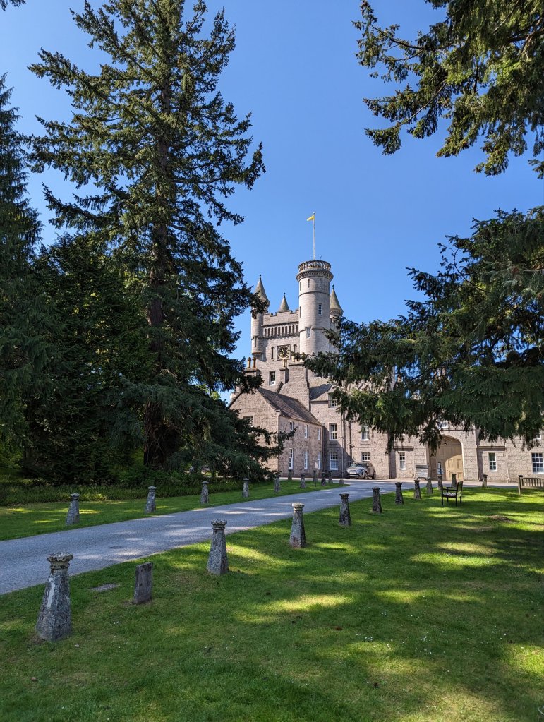 We left Pitlochry this morning and headed to Balmoral Castle. The route there was pretty rural and the roads today were even more narrow and winding than yesterday. In many parts, Chuck had to slow way down and pull slightly off the road to let an oncoming car get past because we weren’t totally confident that two cars could fit on the road side by side. It was still very beautiful though and we saw tons of sheep and some adorable lambs.