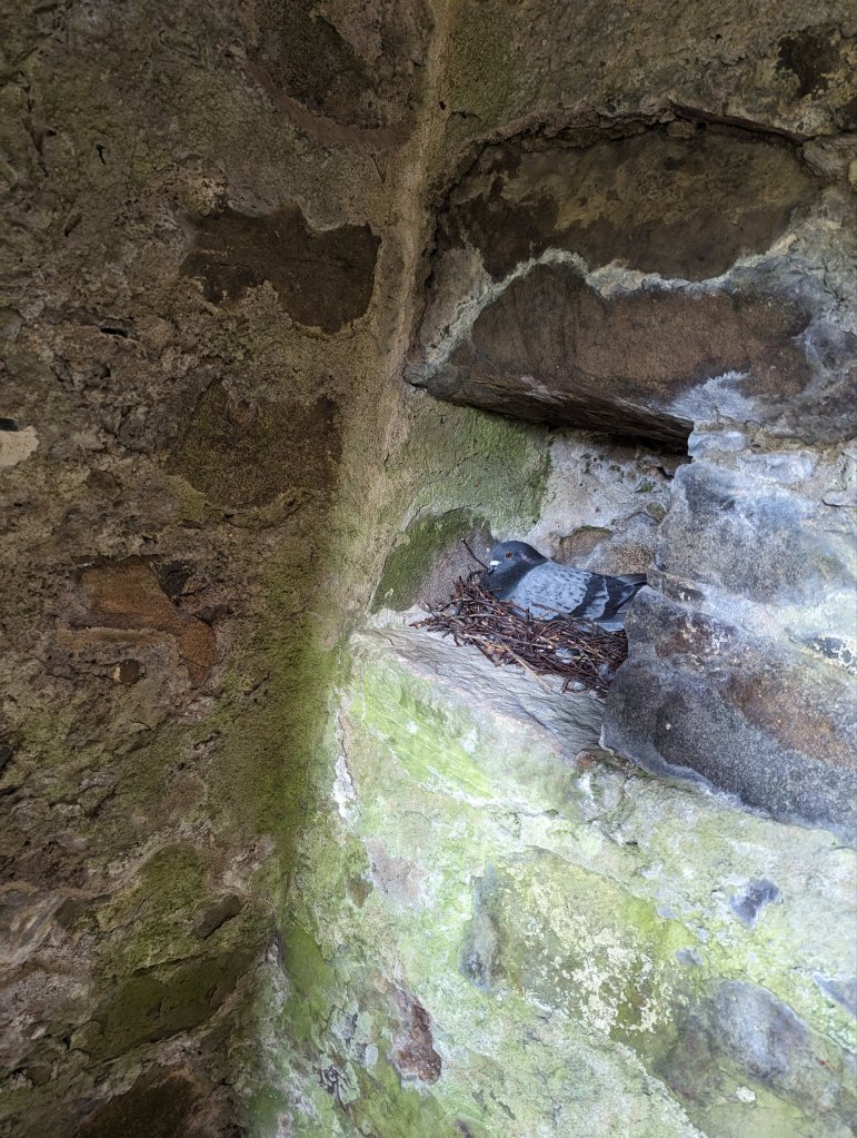 - Being startled by this bird hanging out in a little nook of the castle