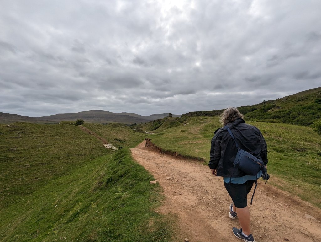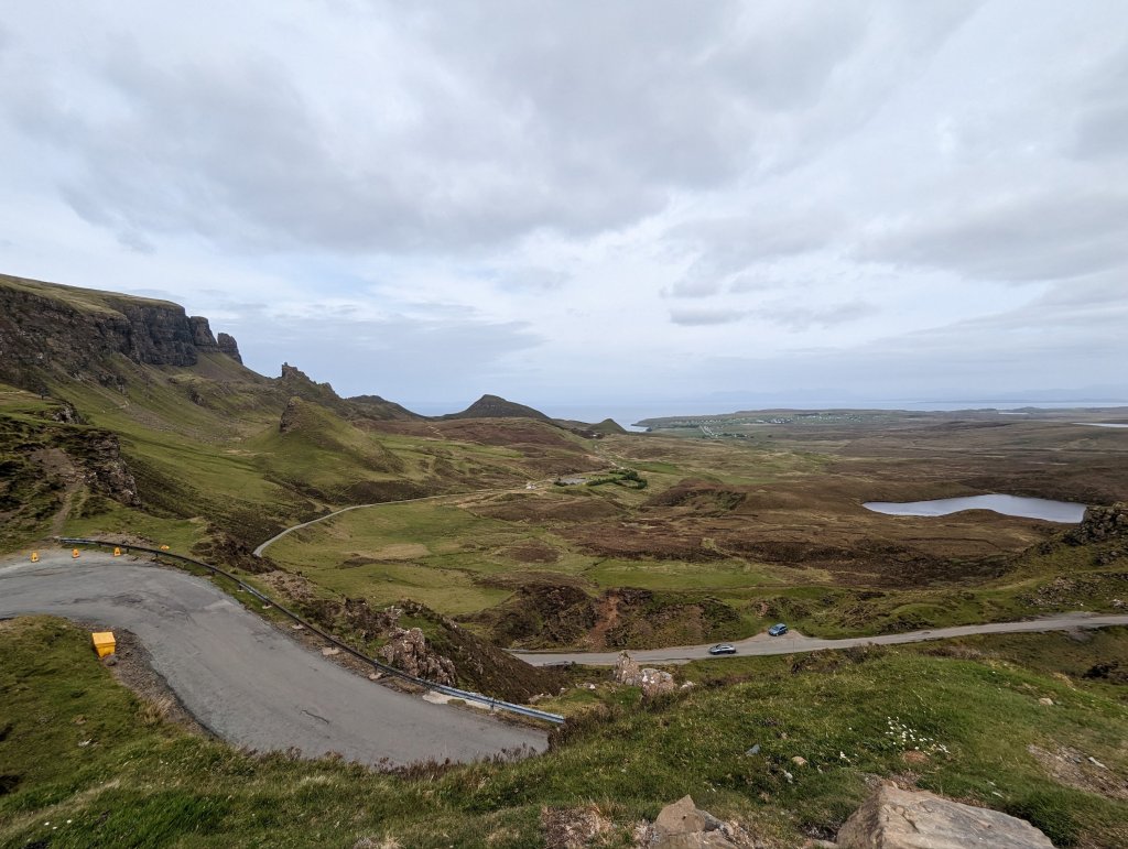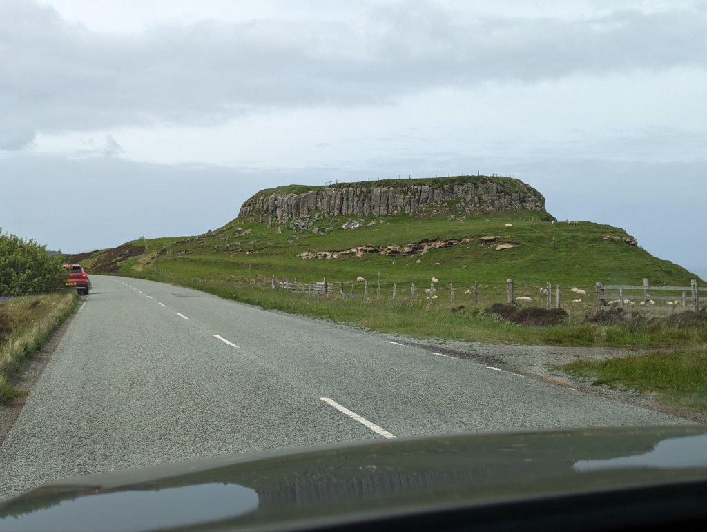 Today we (read “Chuck”) drove the Trotternish Loop around the northern part of Isle of Skye. Chuck had a difficult time sleeping last night and I’m starting to feel the early tell-tale signs that I might be coming down with what he had, so neither of us were overcome with energy to expend. On our way to the car, we were met by the other guest from our B&B who was going on a hike and asked if we’d give her a ride closer to her intended trailhead. As a rule, we don’t pick up hitchhikers, but given she’d helped me figure out the coffee pot in the B&B breakfast room it seemed only fair. She is French and was struggling with her English and our French is pretty much non-existent, so there was some confusion about where we needed to take her but eventually, we left her… somewhere. She didn’t seem angry about where she ended up, so I hope she got where she needed to go. She was supposed to stay here one more night and we haven’t heard her return to the B&B, so I’m feeling a little uneasy about it. If you see a police sketch of me on Scotland’s Most Wanted in connection with the disappearance of a French hiker, you’ll know what happened.