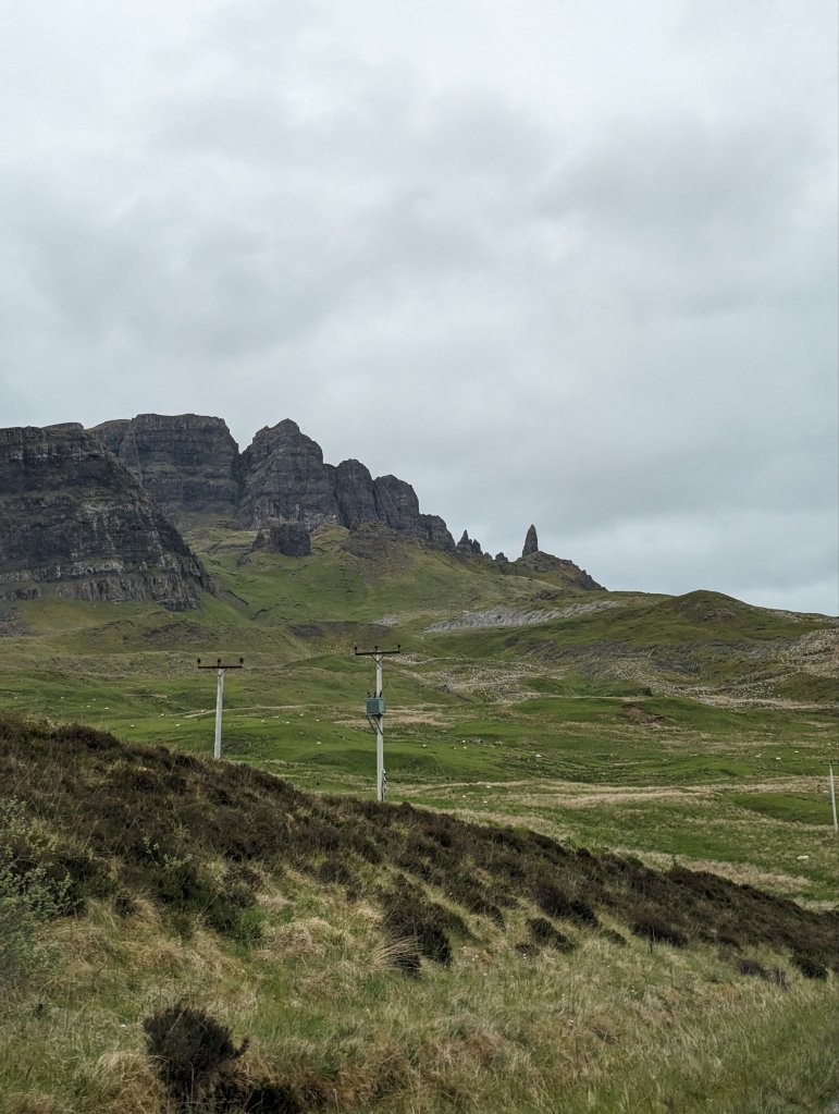 After the fairy glen, we stopped for lunch in Portree at a cute little café, explored the downtown area, and grabbed some items for dinner at the co-op grocery. The rest of the tour was mostly looking at great big rocks – either from the windows of the car or sometimes parking to walk a few minutes to look at the big rocks. There were some beautiful views, but none quite compared to the fairy glen for me. We’re back at the hotel now, resting up and preparing to eat our instant soup and call it an early night.