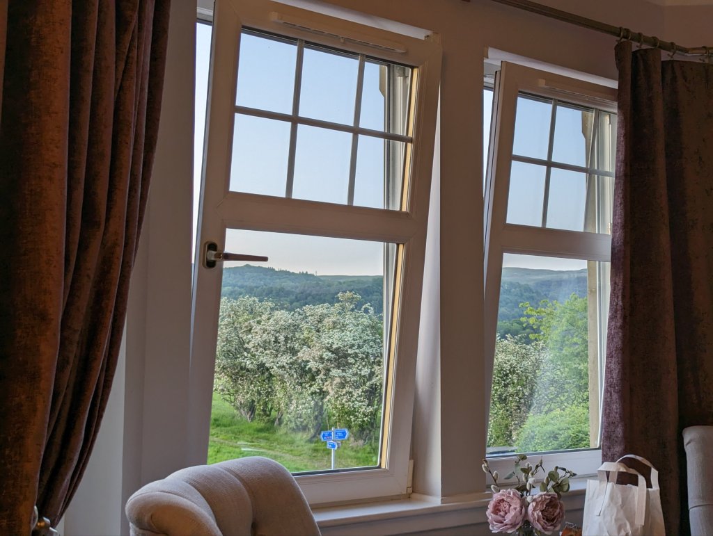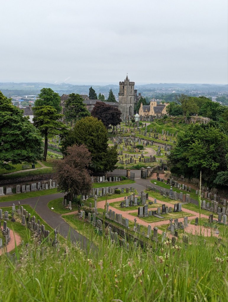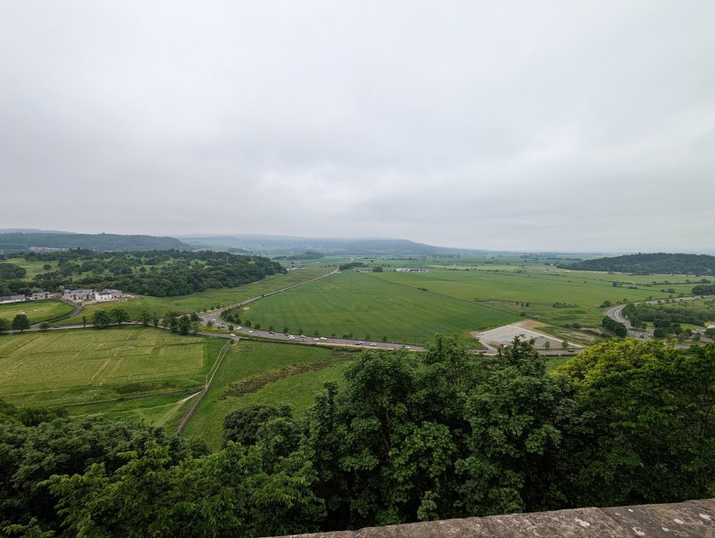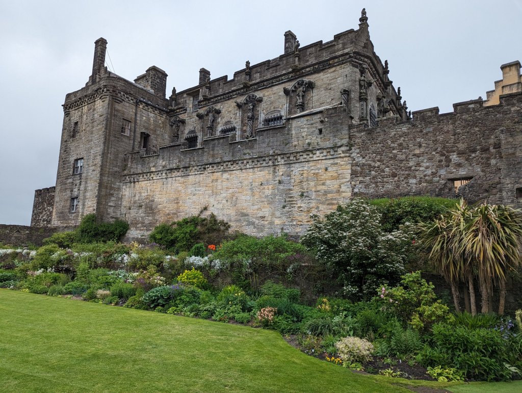 Sadly, today was our last day in Scotland. We got a leisurely start, thoroughly enjoying the cooked breakfast at our B&B, chatting away with the couple who runs it. The breakfast room (as well as our room) looked out over beautiful rolling pasture across the road and they told us about how the current owner of that land has been collecting lots from farmers and hoping to build residential subdivisions. Fortunately for the B&B owners, the town’s council has denied the construction permits, as well as the many, many appeals. I commented that it would be a great spot for a community garden (though such a project wouldn’t generate a profit) and got a very enthusiastic response from one of the owners (Kevin) and groans from Chuck and the other owner (Kim). From there, we embarked on a lengthy discussion of gardening, foraging, pollinator habitats, and dandelion syrup. Eventually, Chuck managed to wrench me away and off we went for our scheduled tour at Stirling Castle.