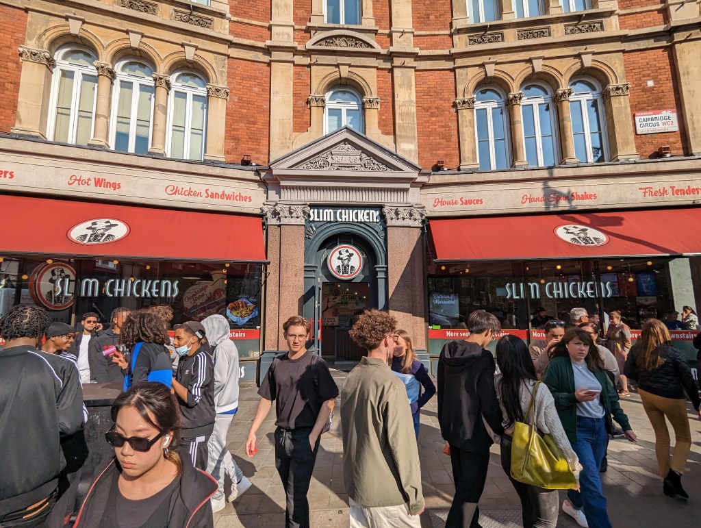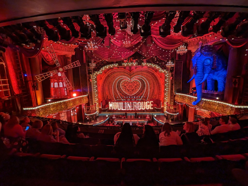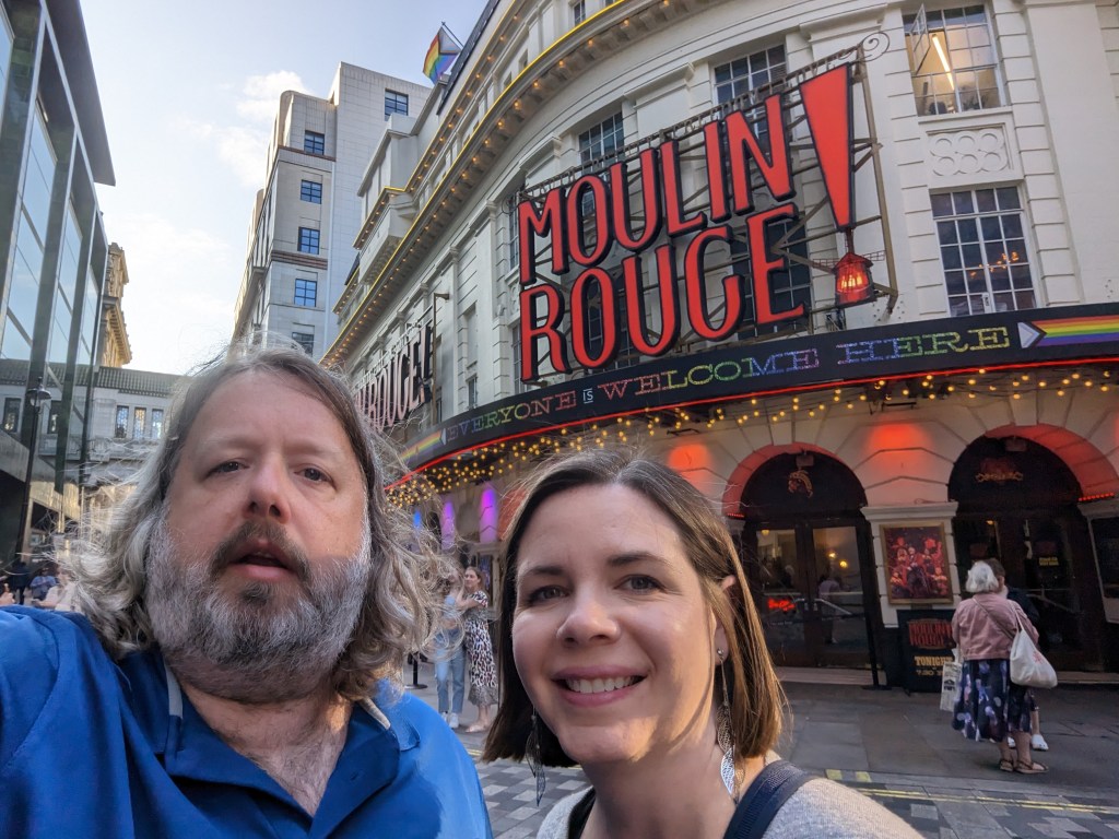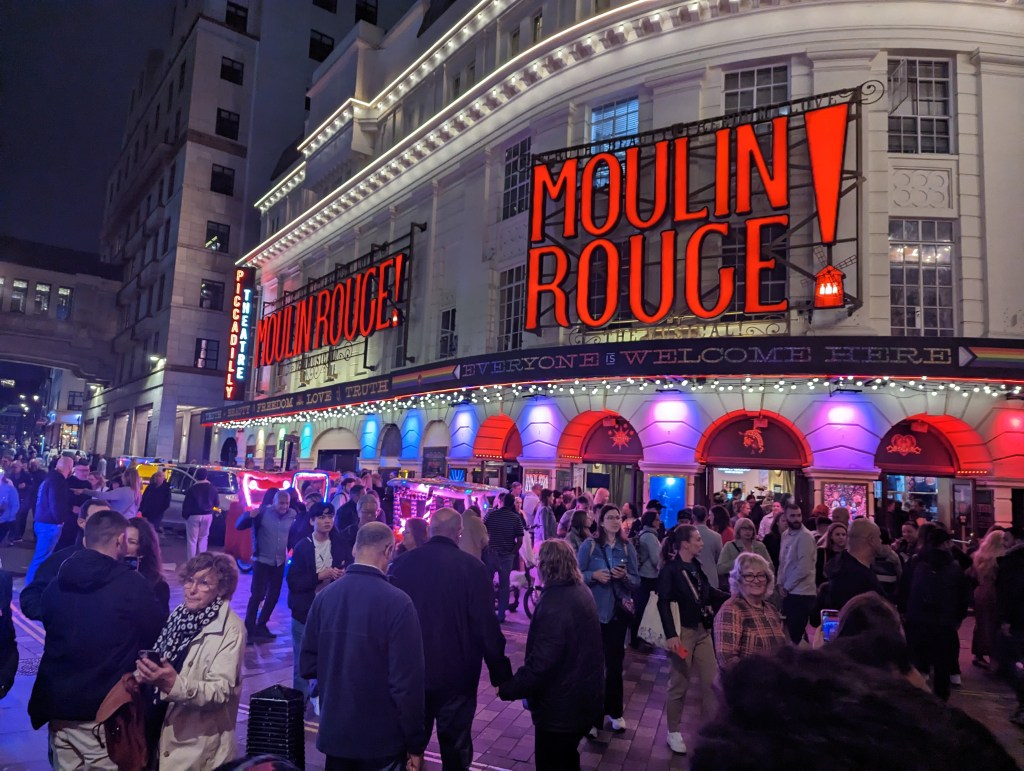 It was good though i am not sure the franchise recipe for Slim’s sauce quite made the transition to UK ingredients or something. The meal itself definitely hit the spot. We continued through the edge of Chinatown to our theater about a block or 2 off Picadilly Circus. We are seeing Moulin Rouge at Picadilly Theater!