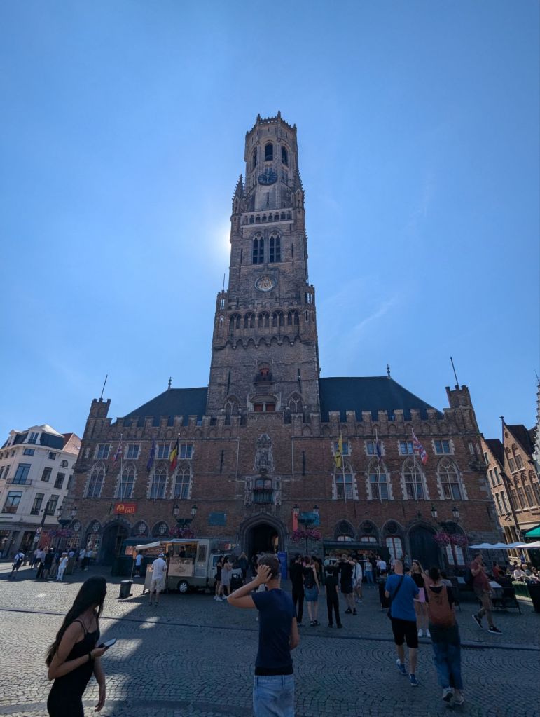 We booked a train the night before and got a fairly early start, but probably should have booked an earlier train, as there was a lot to see in Bruges, despite a relatively compact city center. Or more accurately for Becky, there were a lot of foods and beers to try and only so much that could be consumed within the six hour window we had given ourselves. We listened to an audio tour as we strolled through crowded streets, admiring bell towers, Gothic and Gothic revival architecture, cathedrals, and picturesque plazas. In the process, we ducked into a chocolatier and bought a selection of treats to sample as we walked.