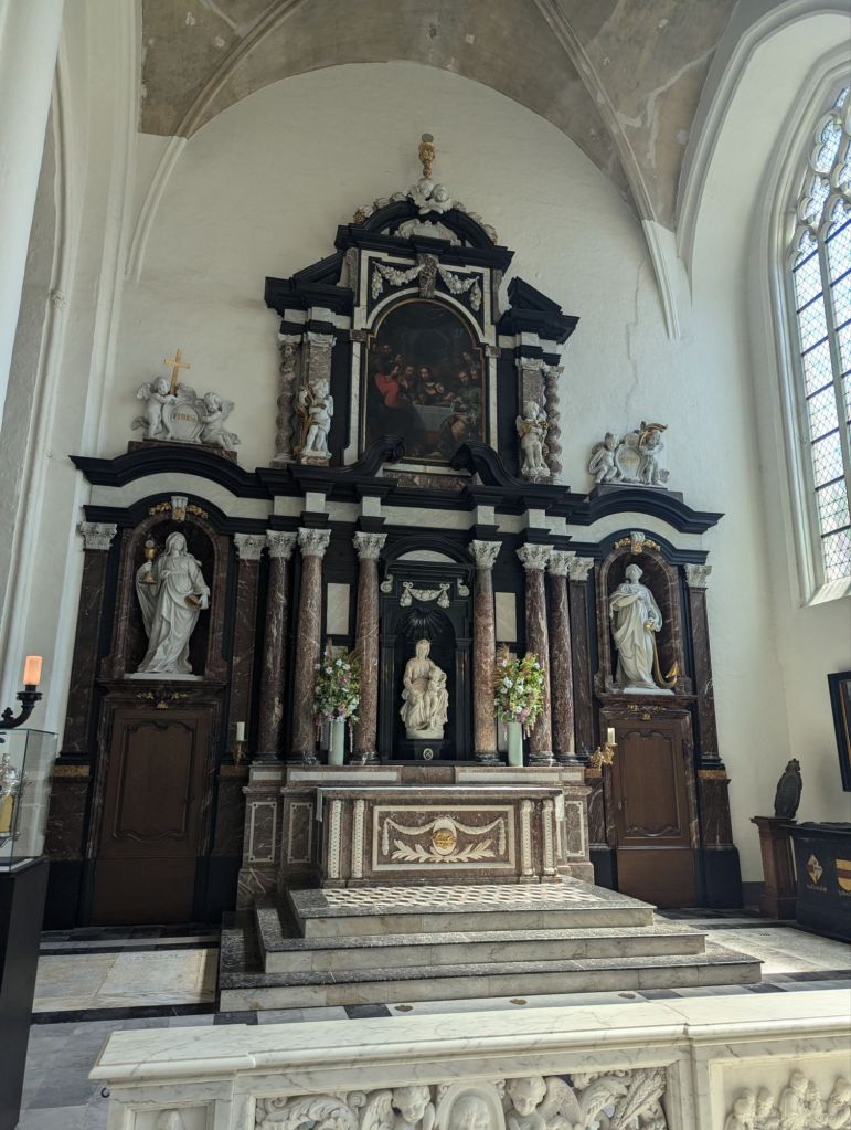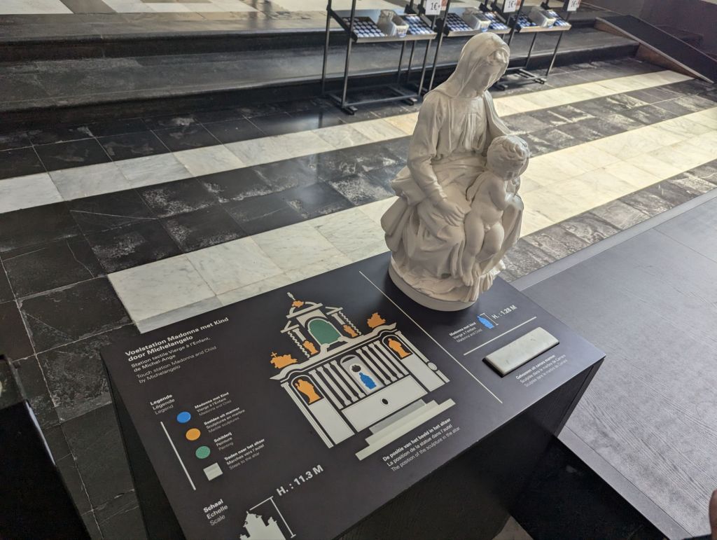 Finally, we made it to the Church of Our Lady, the cathedral that houses the Madonna and Child sculpture. €8 per person allows you into the restricted area where the sculpture is displayed, which meant that we had a quiet moment to ourselves without jostling crowds to observe a piece of art that was considered so precious that men were willing to sacrifice their lives to protect it. The sculpture was especially significant as it was the first sculpture of Michelangelo to leave Italy during his lifetime.