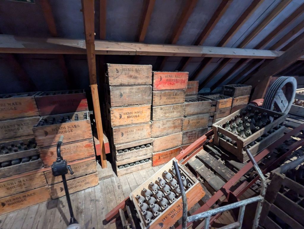After lunch, we booked a tour of the local historic brewery, De Halve Maan, which was scheduled for 45 minutes and was recommended on multiple “What to see in Bruges” lists. We were tight on time, but thought we could just manage to see the few remaining sites after the tour, grab a quick waffle and cone of fries, and grab the shuttle back to the train station. Unfortunately, while informative and quite engaging (the brewery has a unique two mile long underground pipeline to transport unfinished beer from the brewery in city center to their plant for maturation and bottling), the brewery tour ran long and was closer to an hour. The tour ends with a beer sample, which Becky imagined would be a tiny little sample cup of beer but turned out to be more like a pint, which needed to be consumed rather rapidly if we were to finish the rest of our tour and catch the train. To some extent, she was still enjoying the beer from lunch, even though the last sip had been consumed over an hour ago. Gulping down the second beer may not have been the wisest choice.