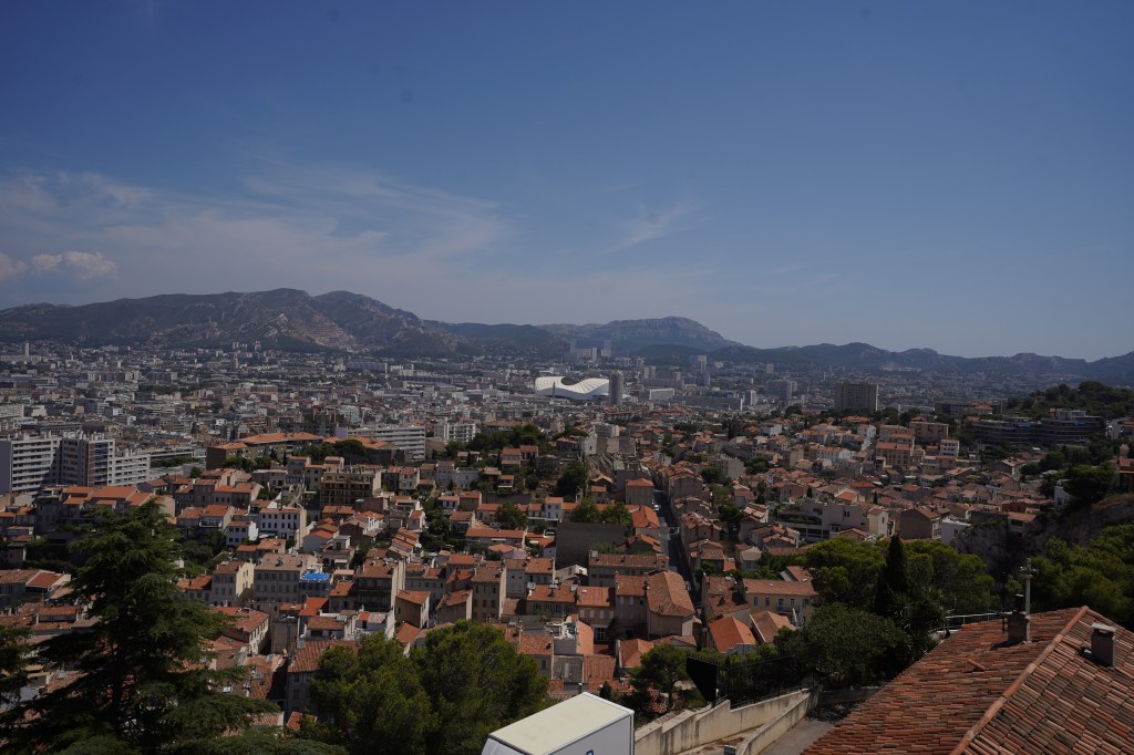 Today we had tickets for the men’s football (soccer) quarter final in Marseille. It’s about a three hour train ride from Nice, so we booked a hotel in Marseille for just two nights and packed up to leave our temporary home away from home for two nights. We snagged a deal on first class tickets on the TGV train, which meant reserved seats in a nicely air conditioned car. And as it was already becoming very warm in Nice, the few hours of quiet air conditioning was a welcome rest.