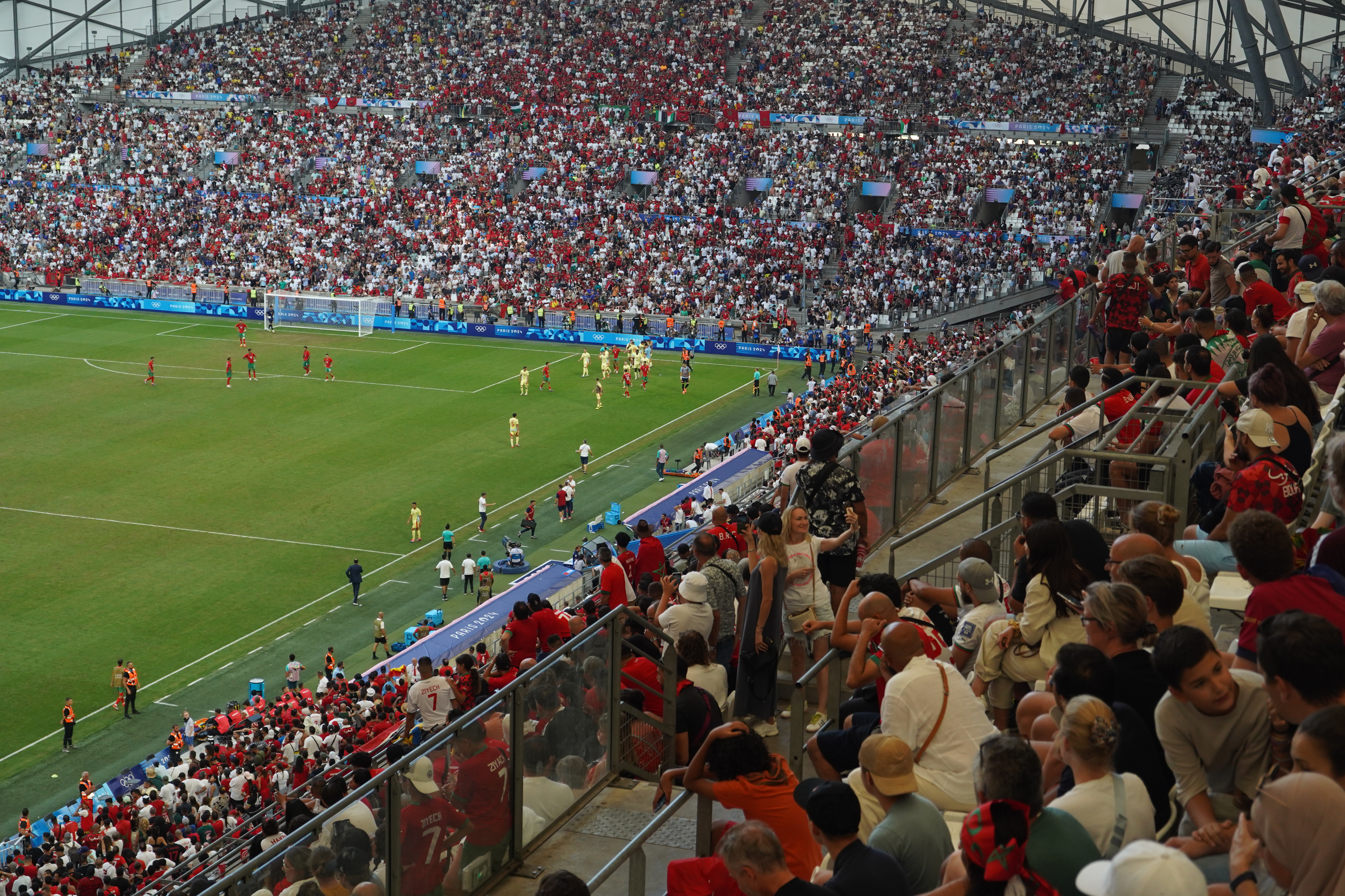 We were pressed for time to make it to the men’s football match (Morocco vs Spain), so we didn’t stay at the cathedral long. We caught the bus back down the hill, stopped at the hotel to gear up, and then headed back out to catch the metro to the stadium. We soon encountered large groups of Morocco fans, chanting and cheering in the station and on the trains as they made their way to the stadium. We’re somewhat accustomed to this by now with various international football matches under our belt and our Austin FC season tickets, but there was something unique about the Morocco fan base. They definitely bring an energy that’s hard to match.