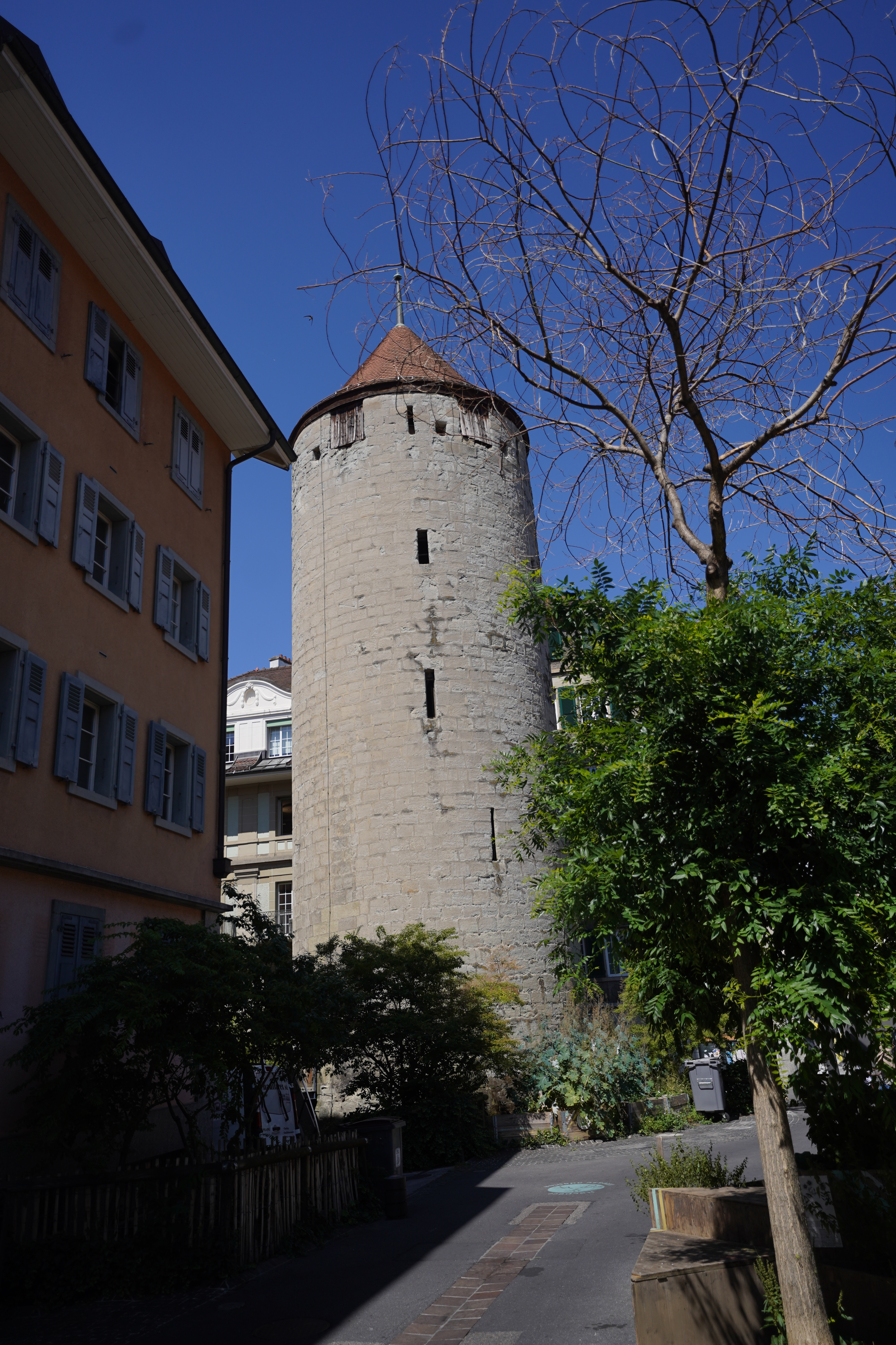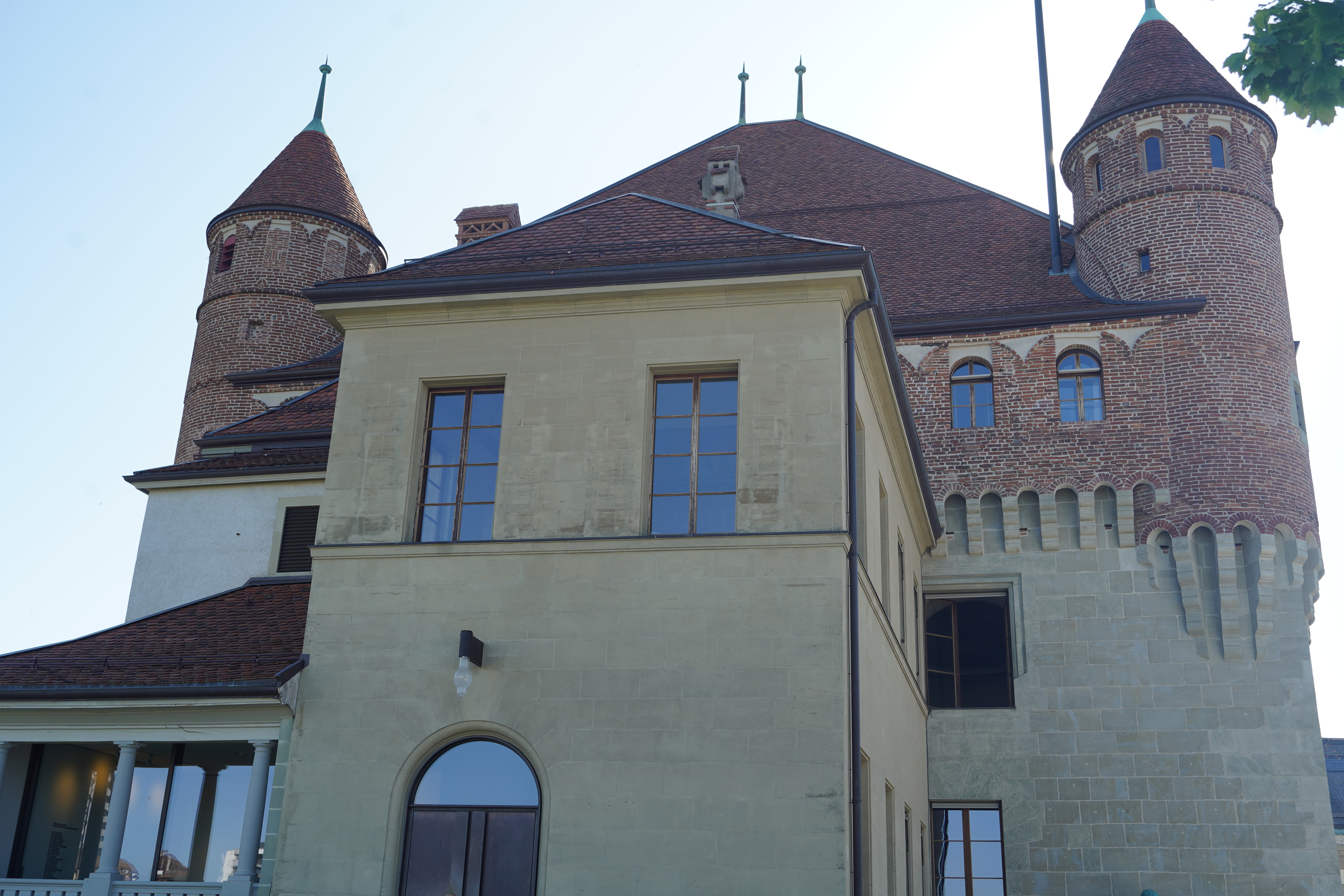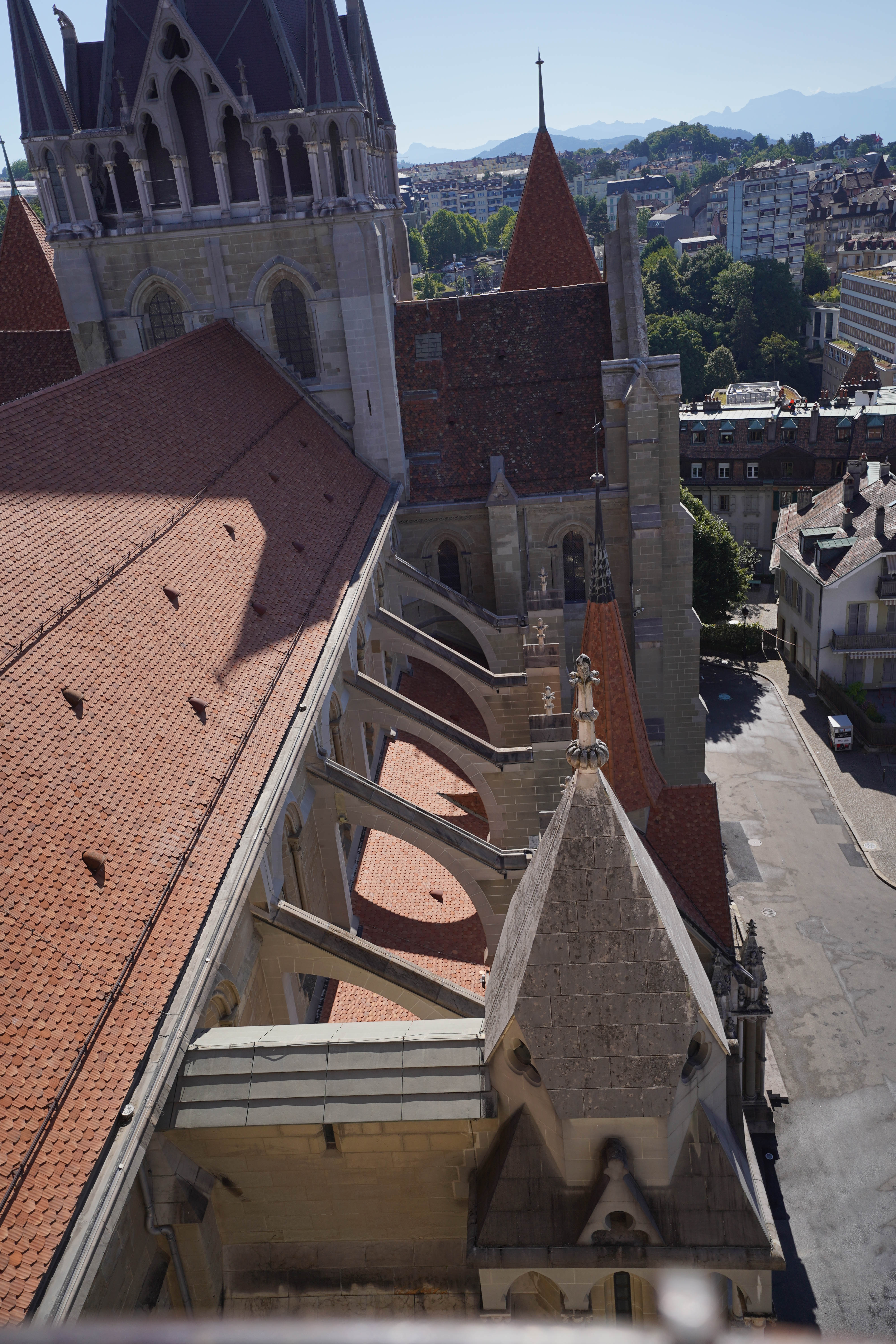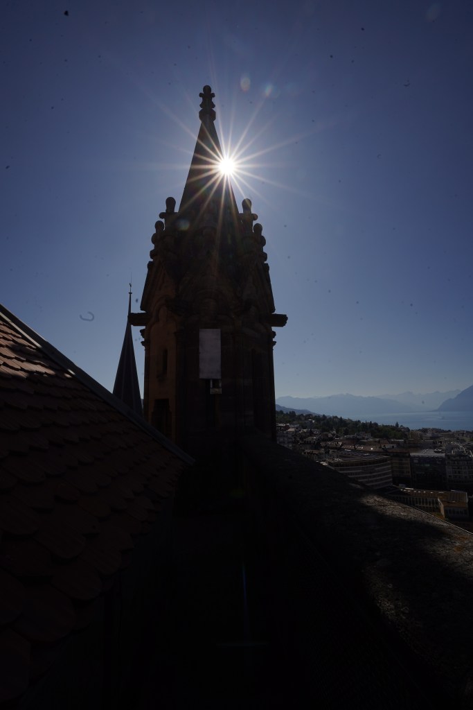 Our day started late with a little bakery breakfast and then we headed to the start of our city walk. The first stop was a few blocks (uphill which will become a theme in Lausanne) to the Chateau St. Marie. This is an old Italian style building which now houses the city administration offices. There is a nice viewpoint in front looking over the city.