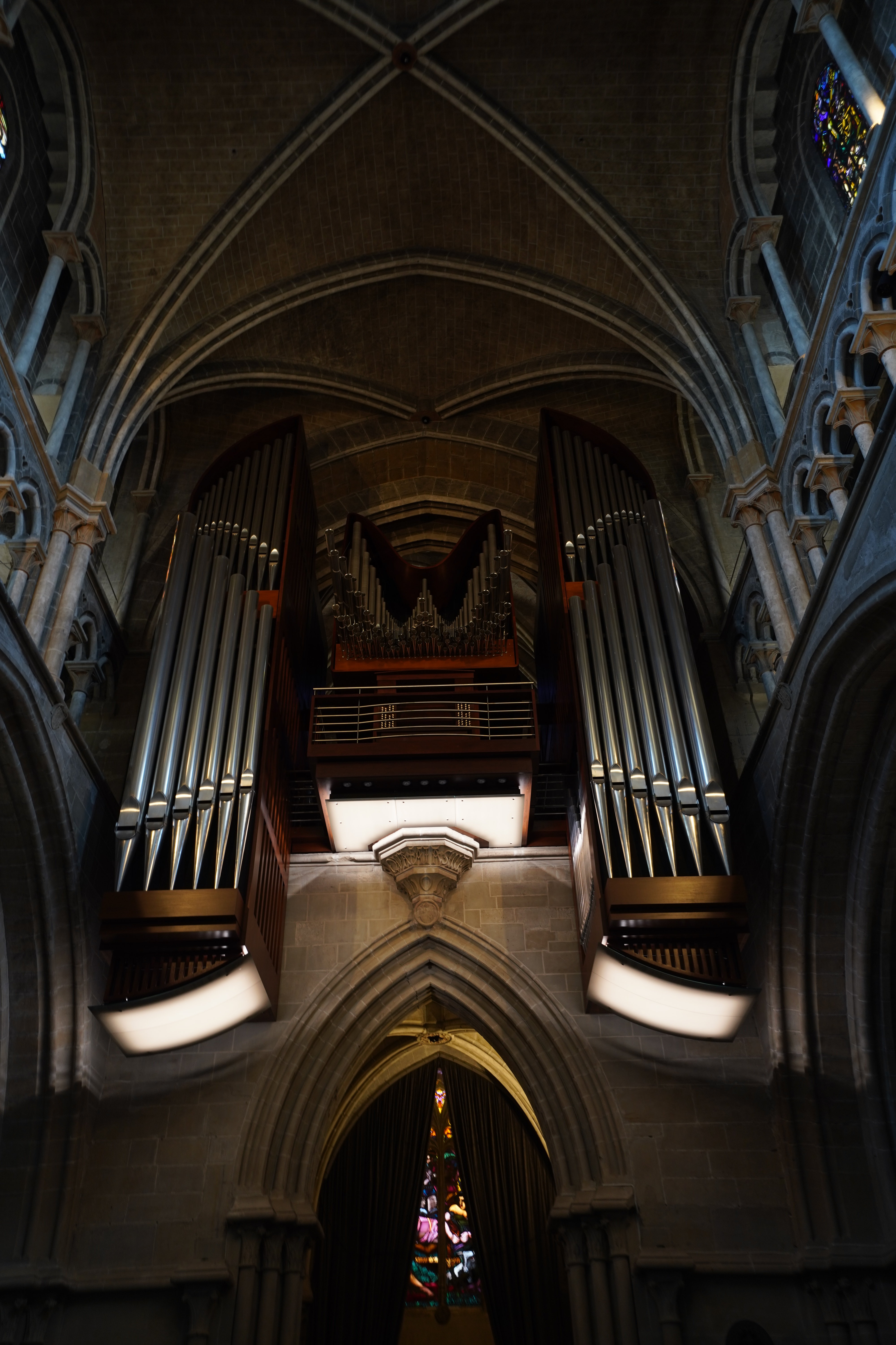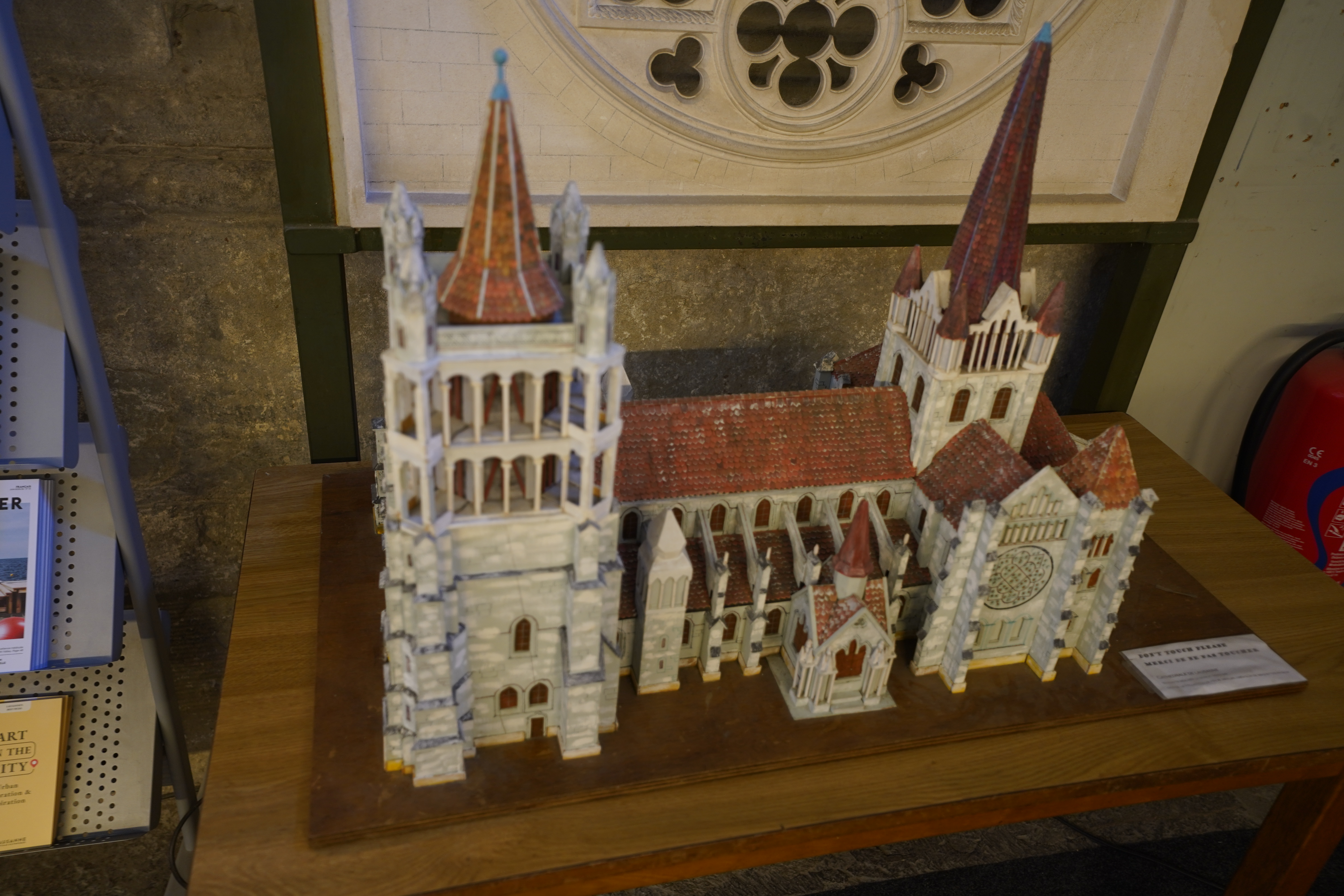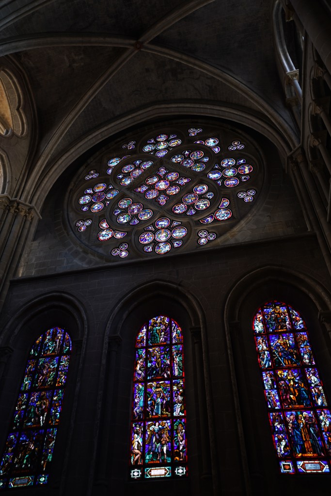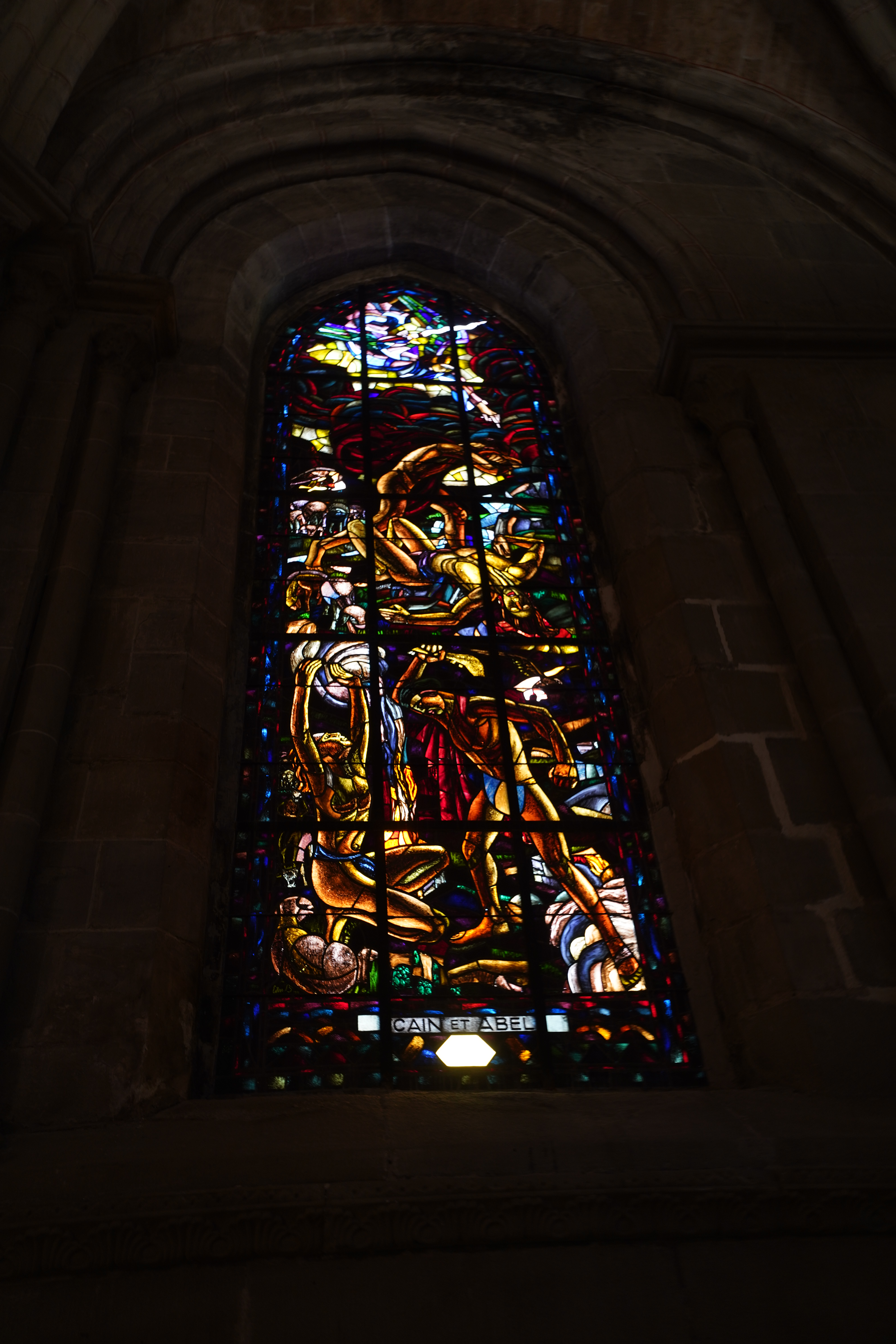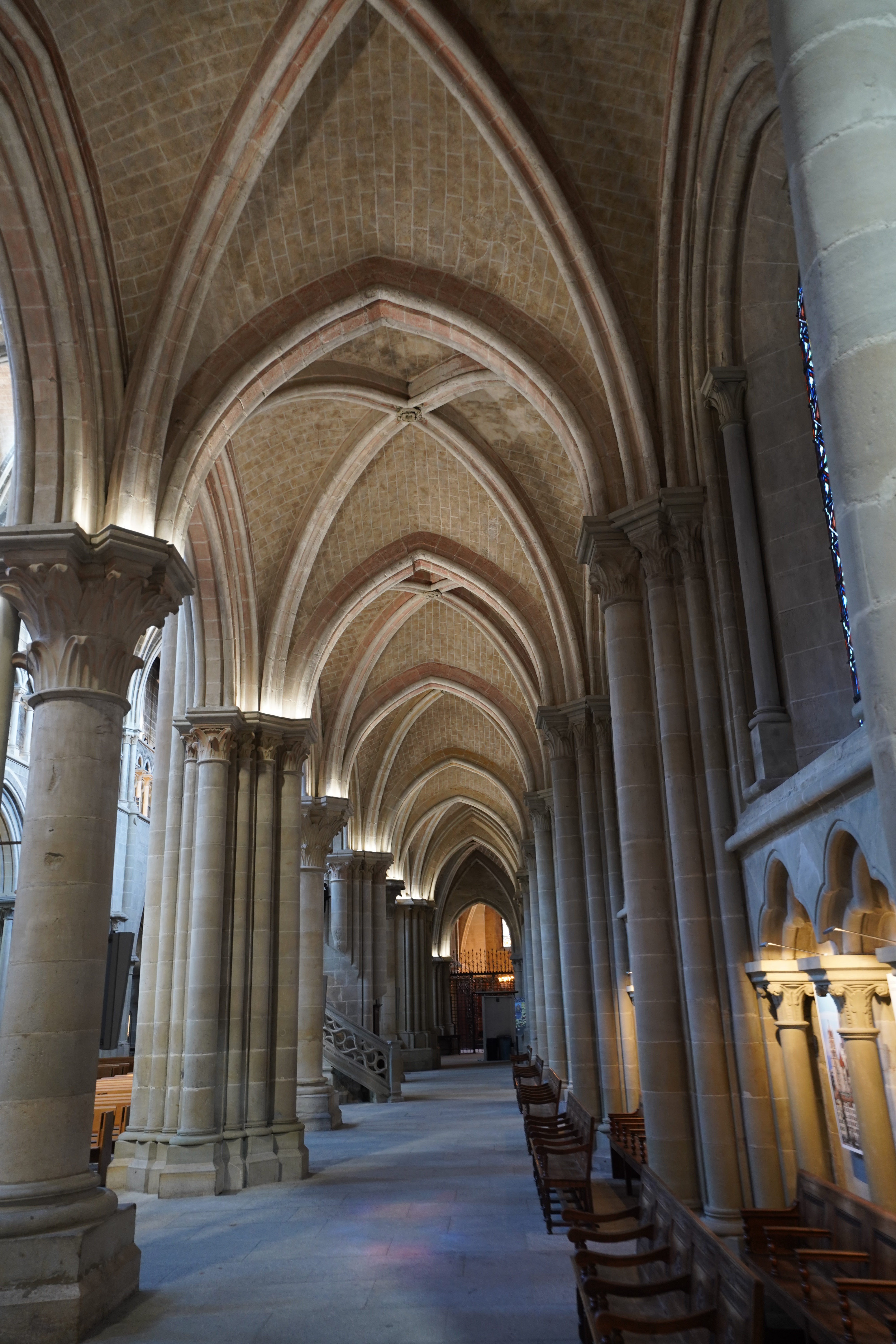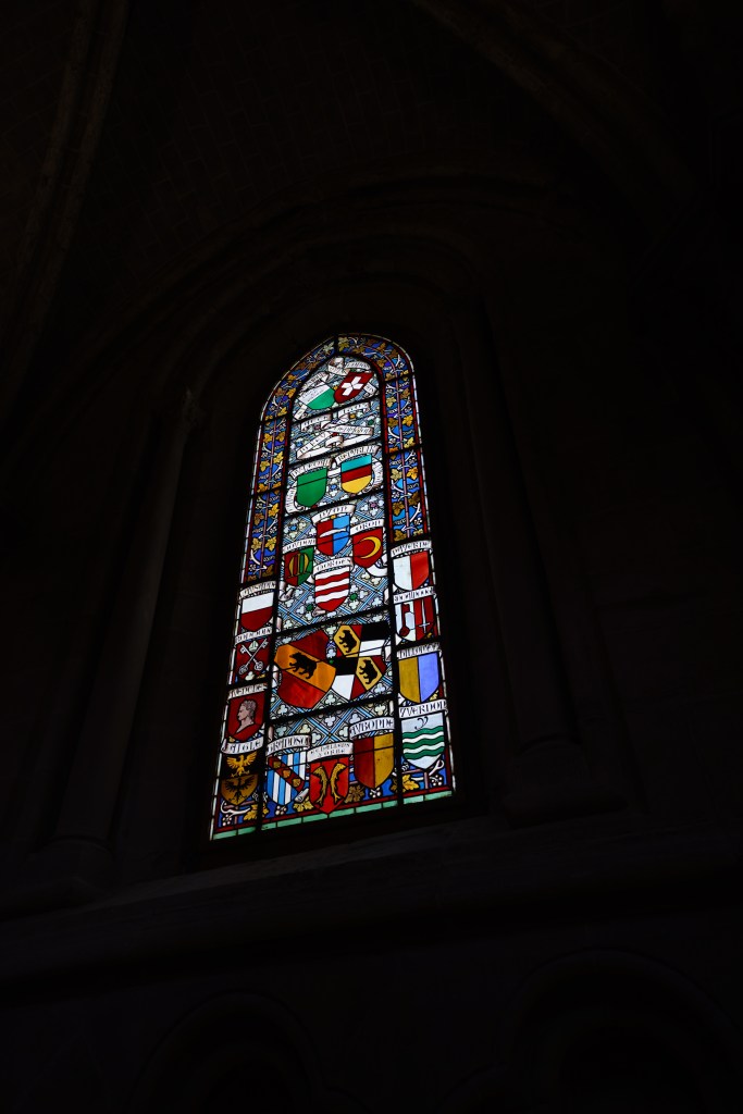 Next we headed downhill to the cathedral and went inside to look around. this is an old gothic style building that was originally catholic and then protestant so most of the decorative elements have been removed though a few remain including some newer stained glass windows. The centerpiece is the new large organ. They do concerts and the pews even reverse so you can face the organ in the back. We got a bonus as they started playing small excerpts while we were looking around the cathedral. After touring around the main floor we decided to brave the 200+ steps up to the belfry tower.
