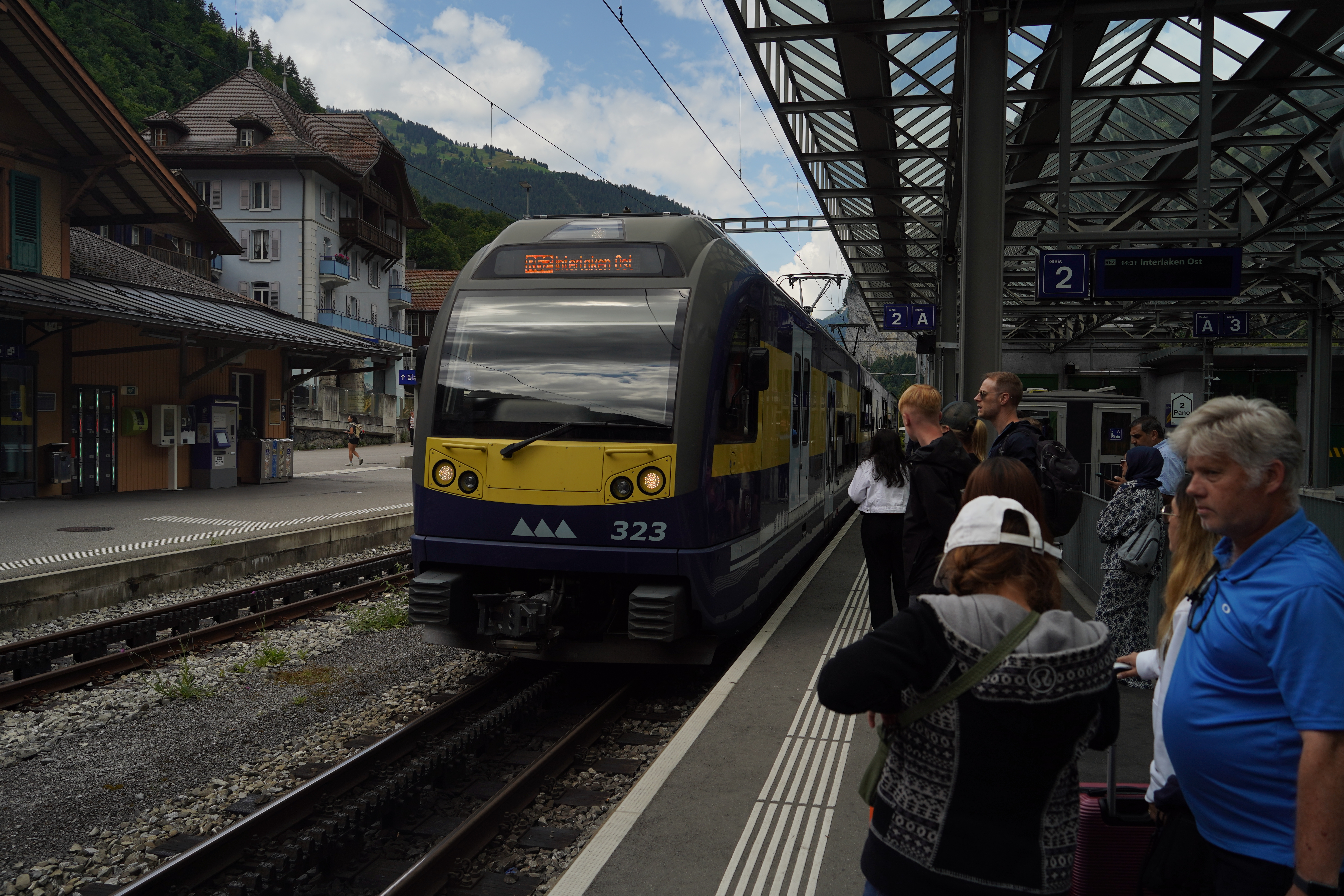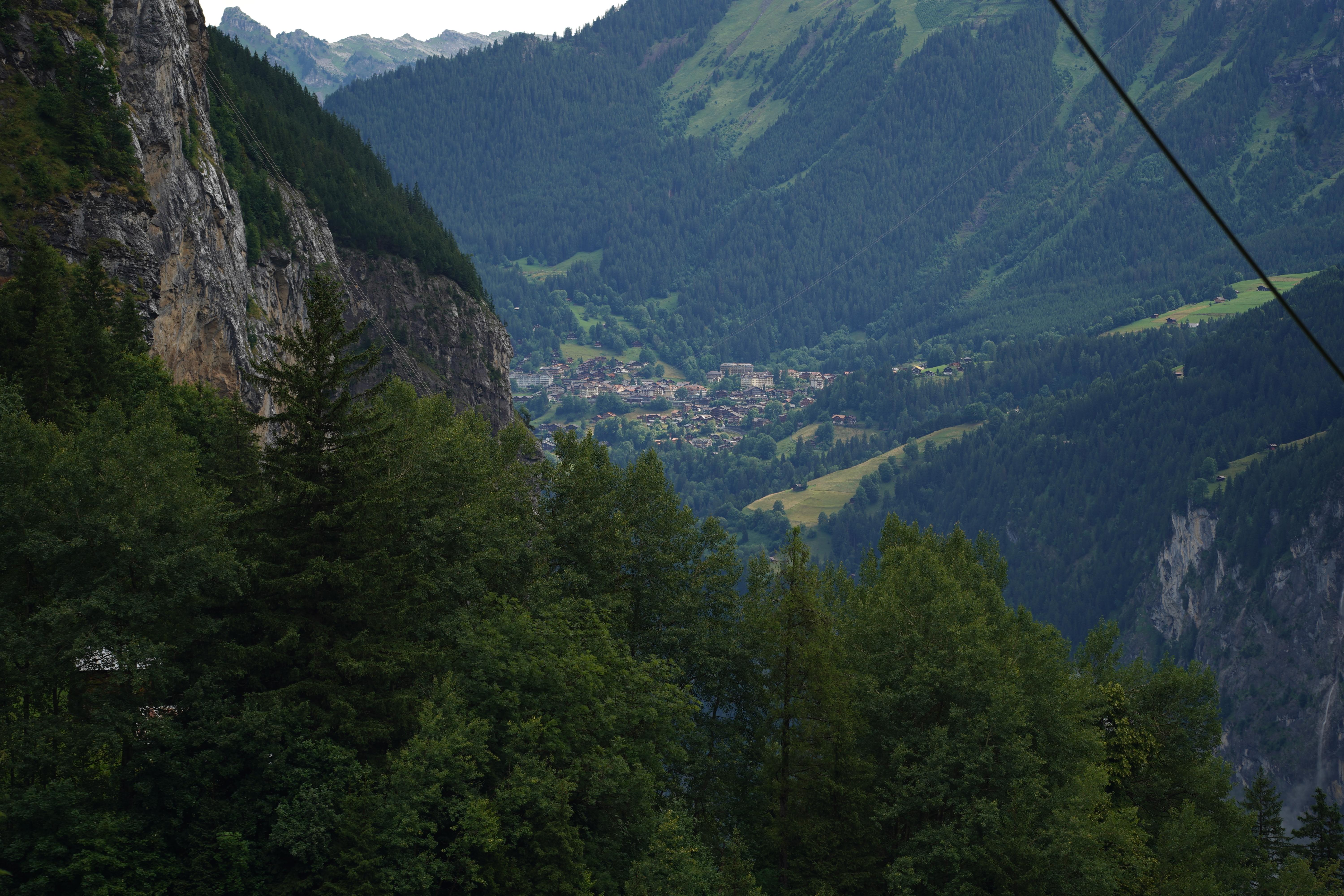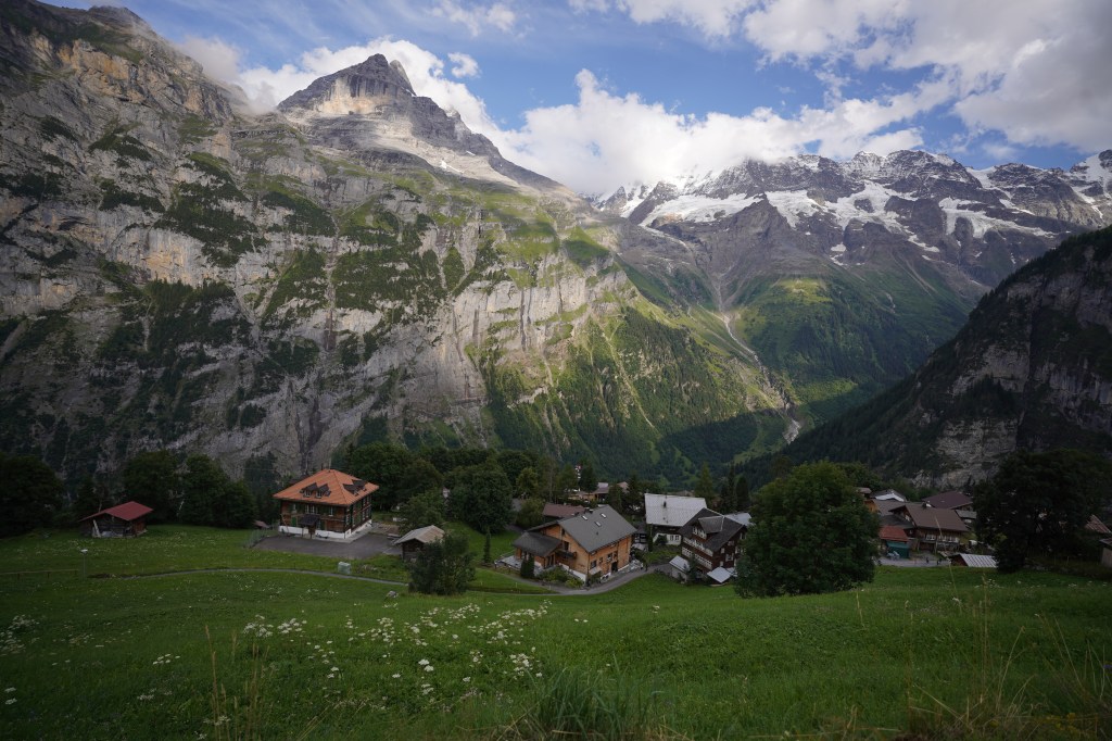 We found out our good friend Cathy and her son Sam were arriving in a bit over an hour so we went and grabbed lunch at a cafe and killed time until we could go meet them as they arrived. They were staying up in Gimmewald as well at another B&B near us so we met up and showed them the ropes on getting up there as it involves a bus and a cable car. We let them drop off their luggage and then headed up to the slightly larger town of Mürren and walked a bit and found them late lunch while we had some ice cream. We were going to do a short loop hike above Mürren but the funicular was closed for the evening so we walked the beautifully scenic paved trail back to Gimmewald.