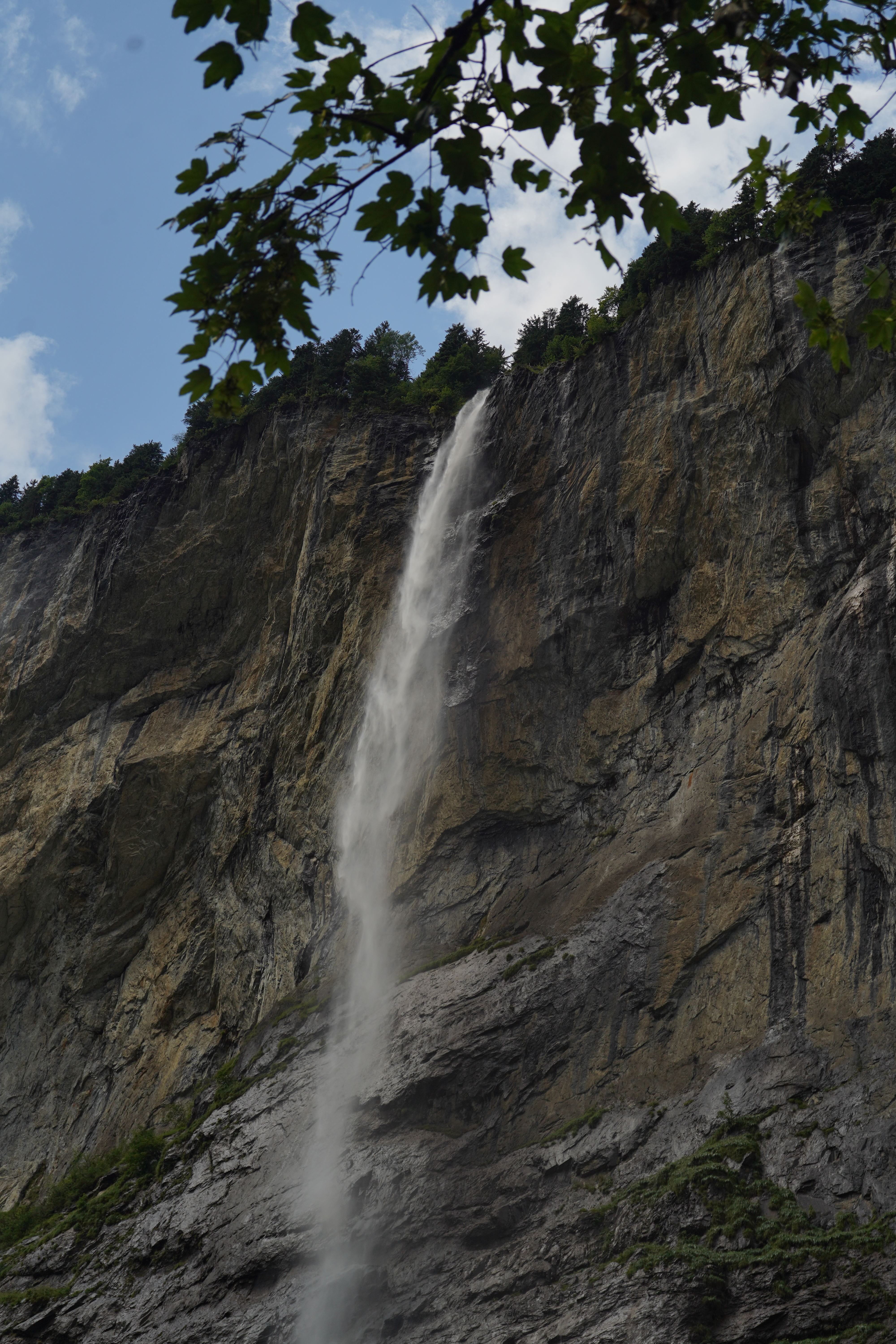 We bought some local Alpe Kase (Alp cheese) from a vending machine for a snack later and rode up the valley famous for it high cliffs on both sides and 72 waterfalls. We stopped and looked at the tallest of the falls, Staubbach falls, and looked up and up and up as the water fell.