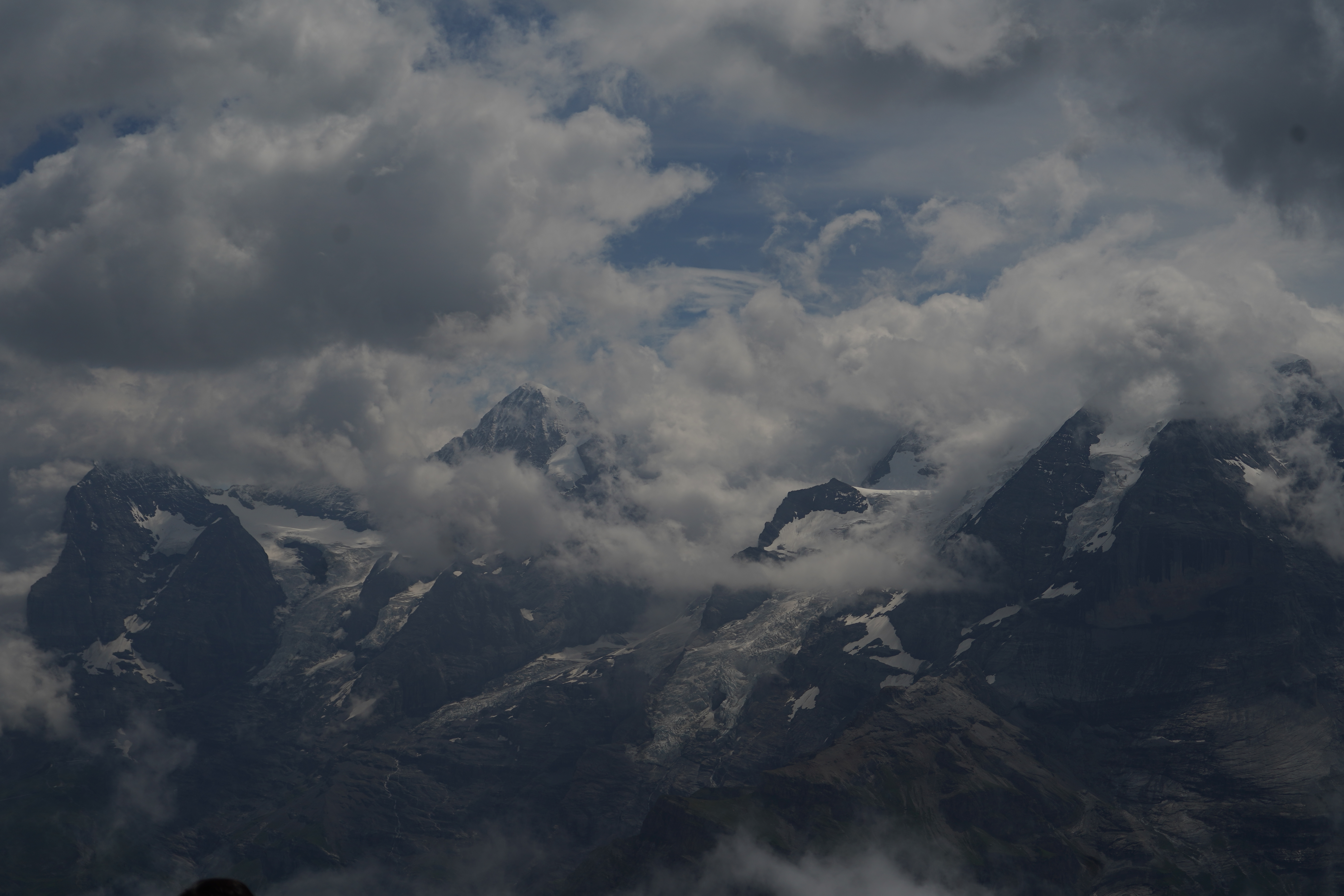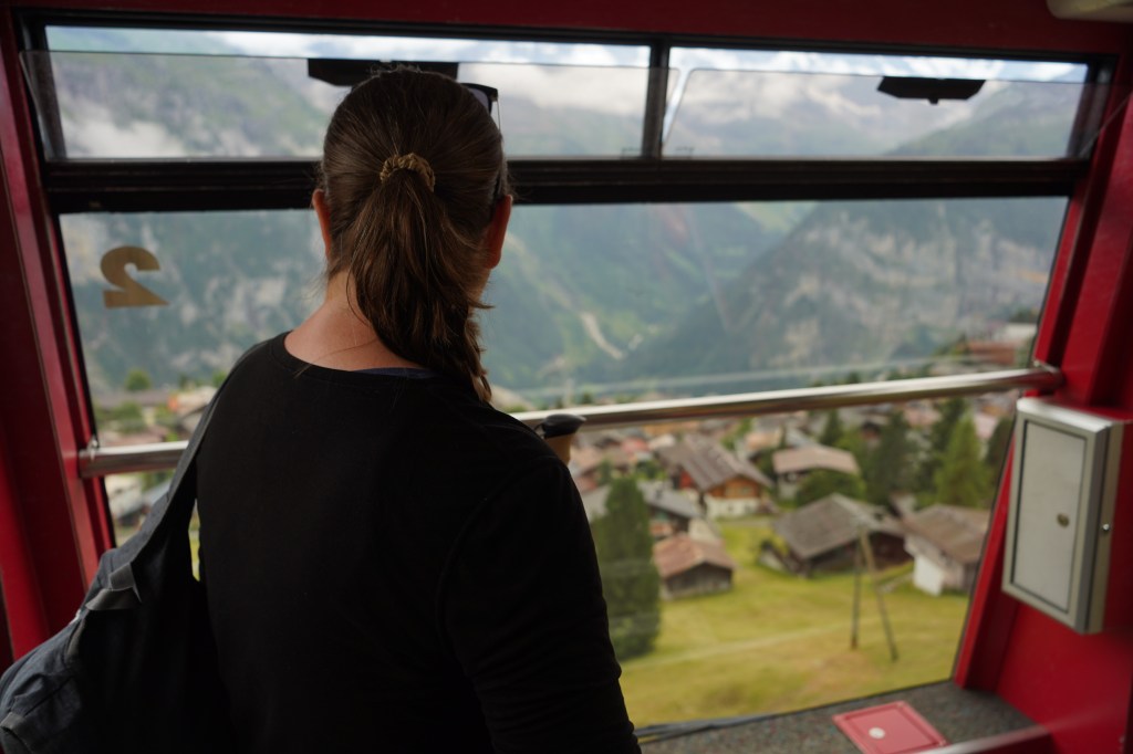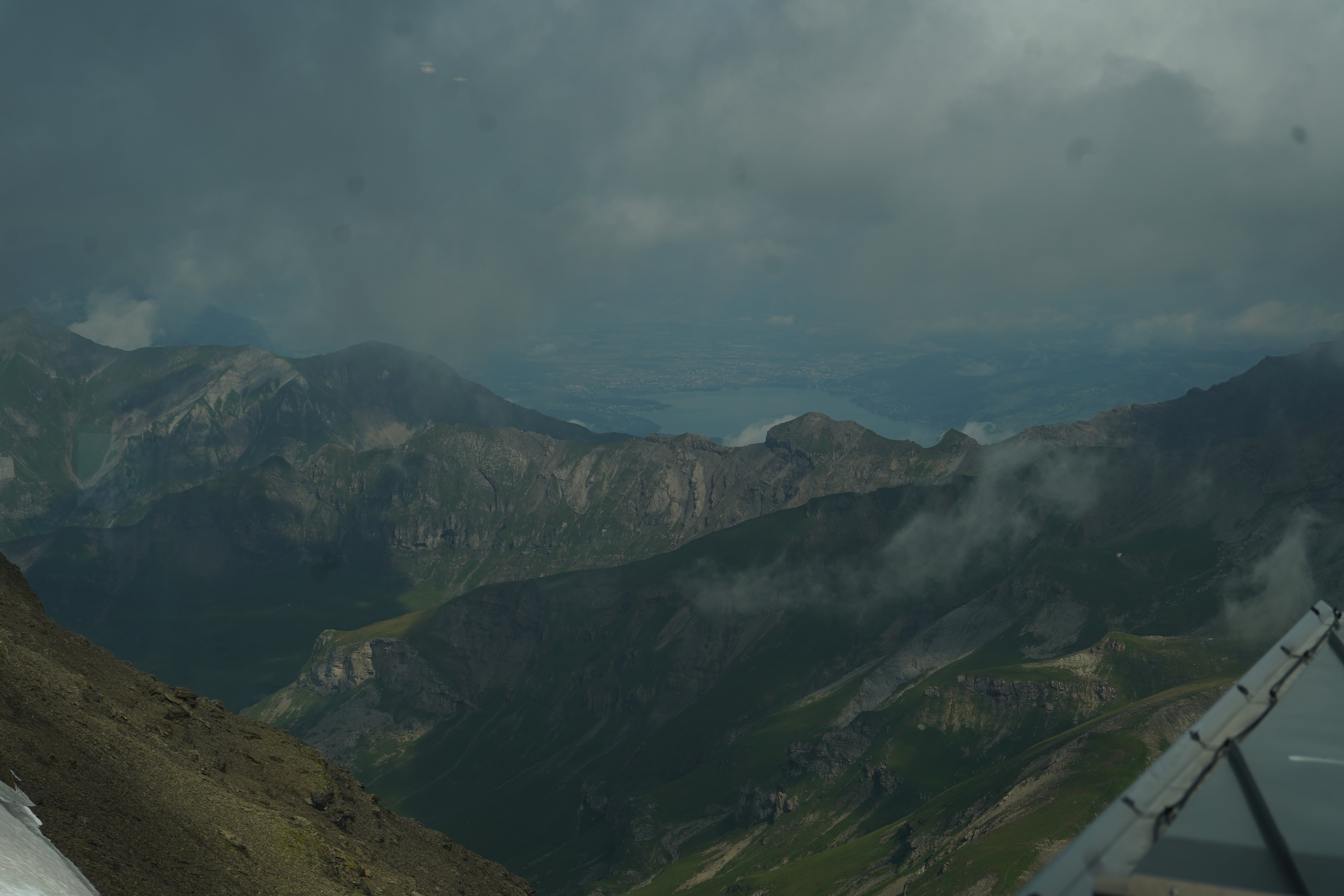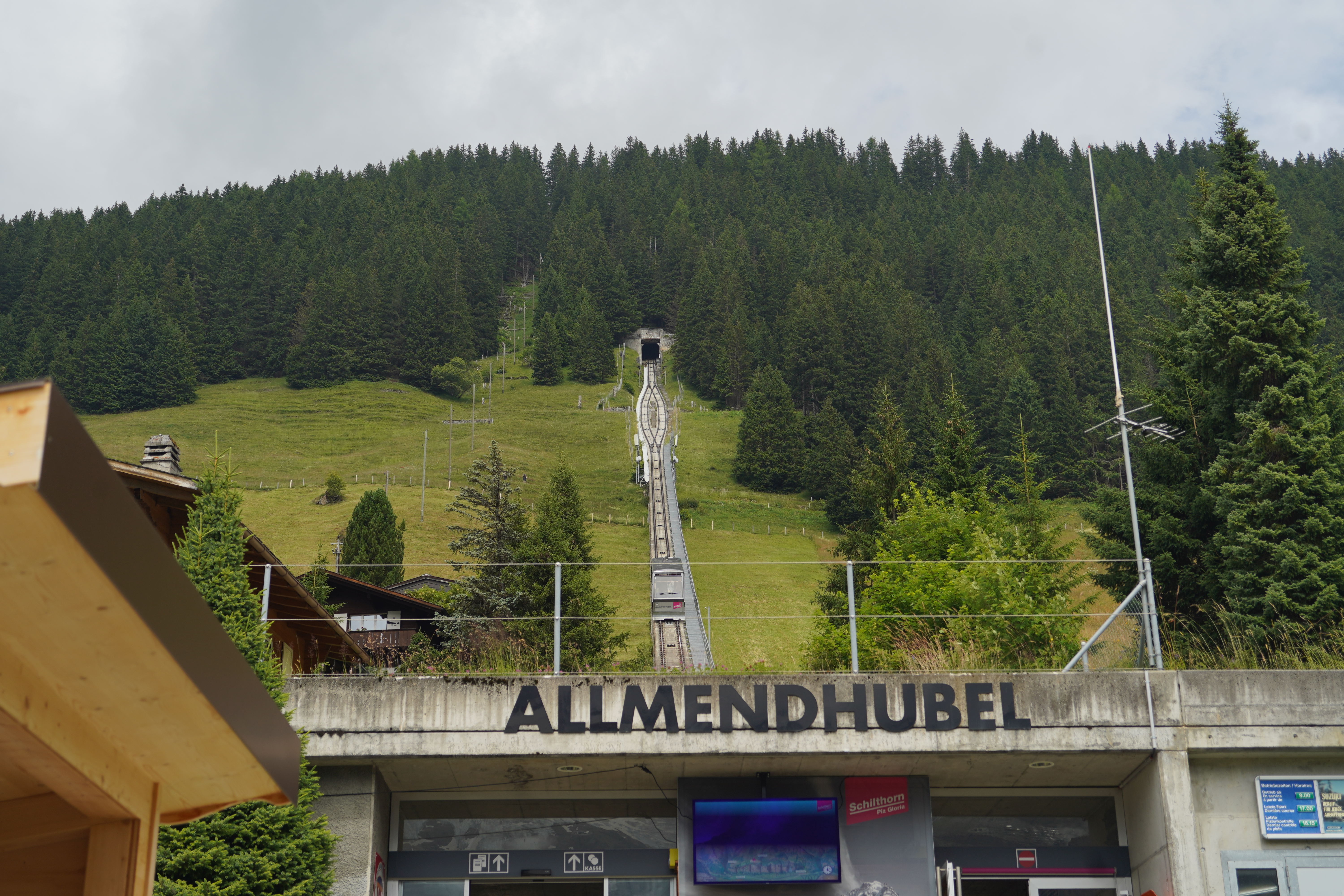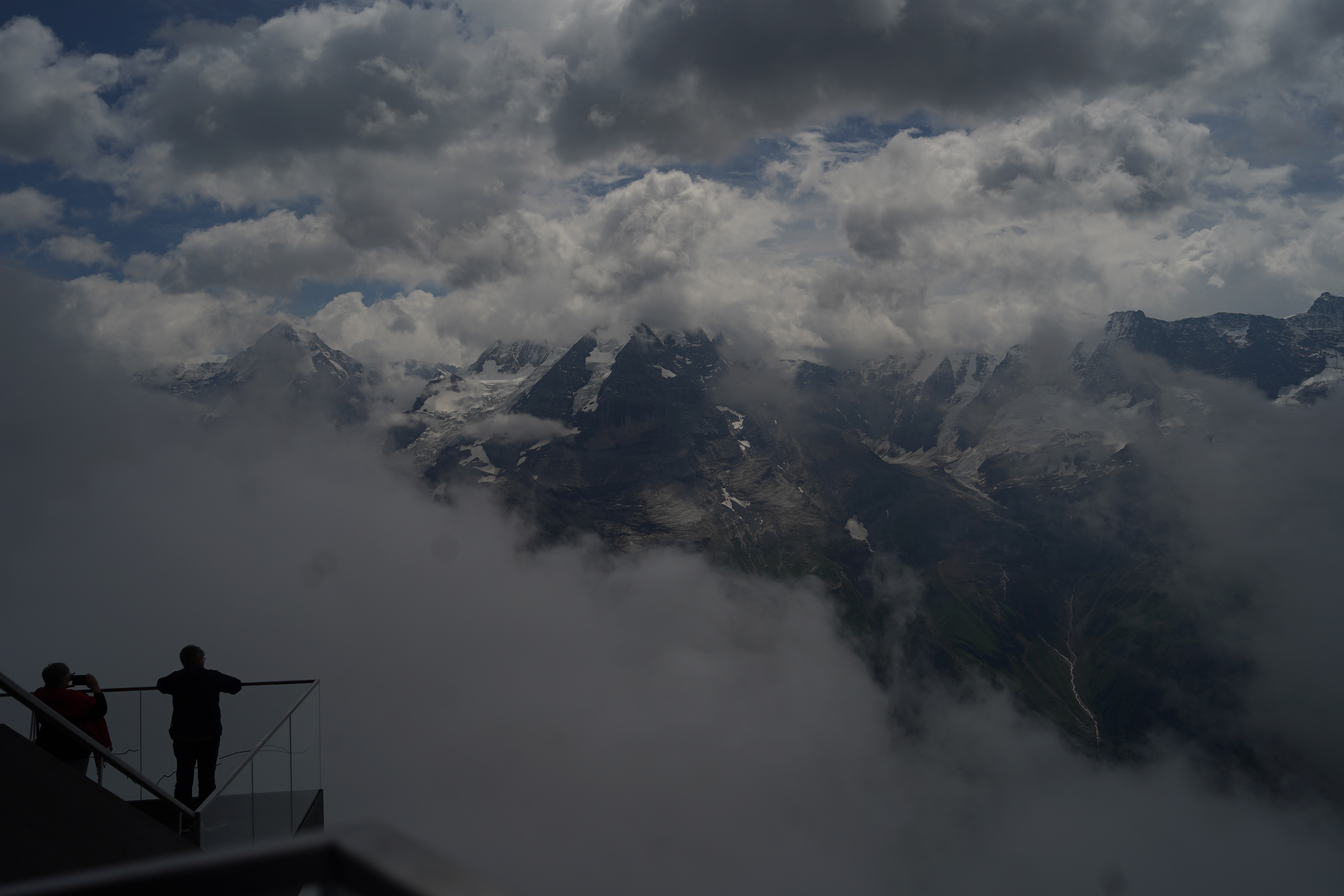 Today our plan was to go to the top of the Schilthorn mountain to try and see some views across the Alps and in particular the 3 big mountains in the area, the Jüngfrau, the Monch (Monk) and the Eiger (Ogre). We got prepared and headed downstairs to change shoes and our host caught us asking about finalizing the bill and seemed to think we were checking out. This was news to us so we asked him and he apparently had us down only through the 15th though we showed him the multiple emails where we talked about staying through the 16th. Unfortunately despite him trying there was really no option for us there so we scrambled to pack up our room and stored our luggage with him and raced to meet Cathy and Sam down by the cable car station to head up the mountain.
