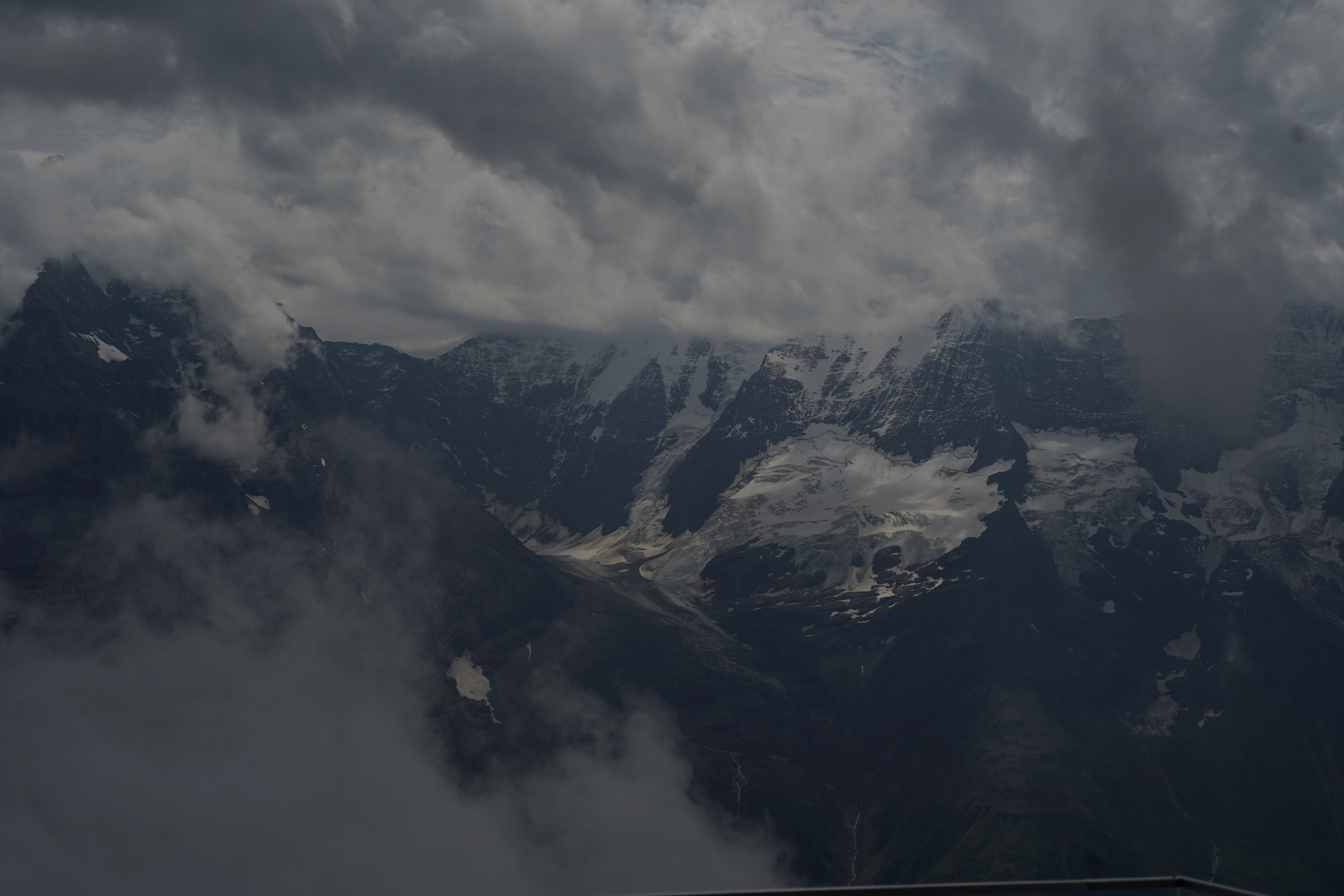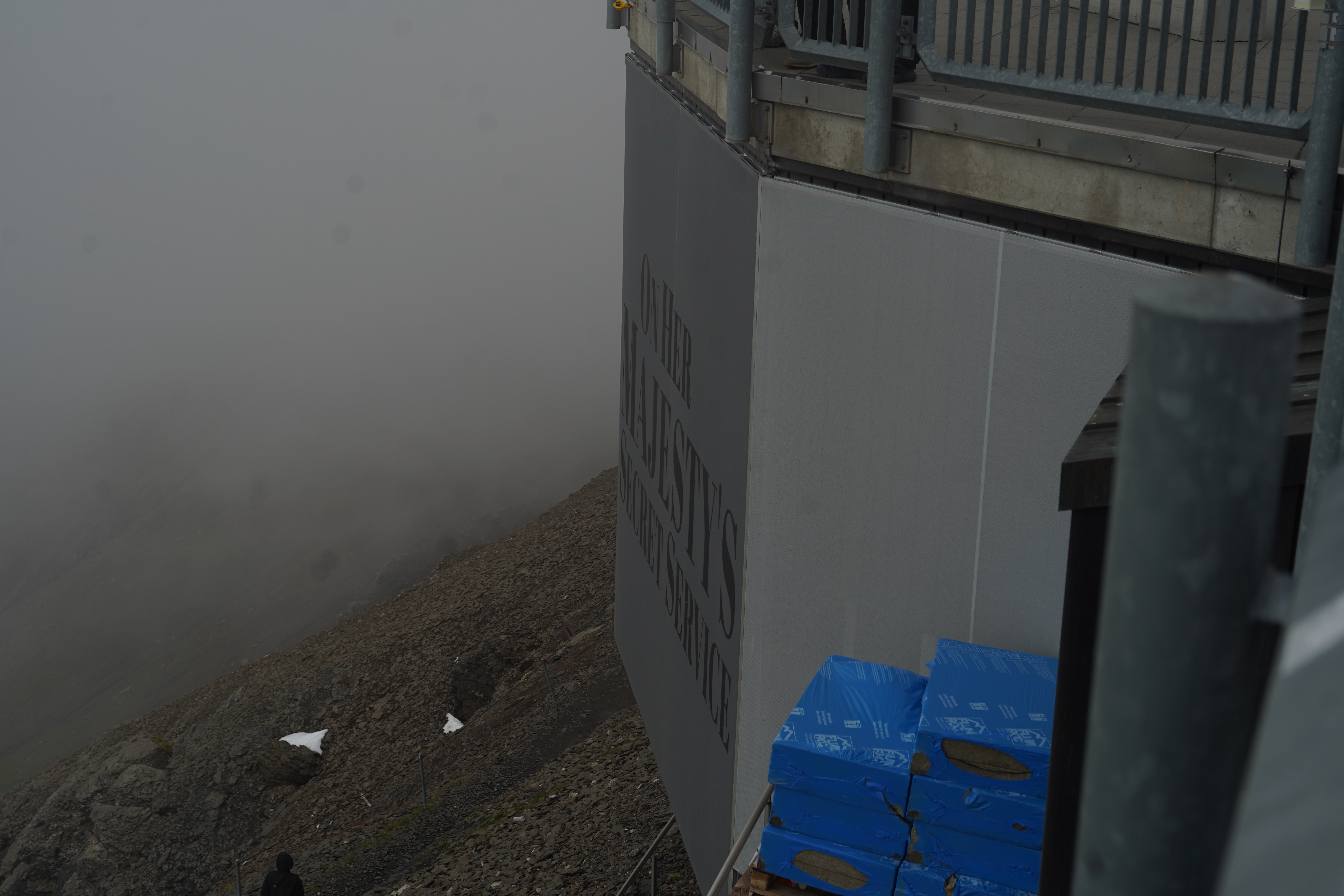 It was overcast and clouds would drift through blocking our view entirely but then clear to let us see long distances around the area. After breakfast we went to the cinema/museum about the station and the Bond movie filmed here and around the region. We then went out to the viewing platform which at this height was windy and cold and looked around and took pictures before deciding to proceed back down to the Birg station which was slightly lower and we hoped might have some clearer views.
