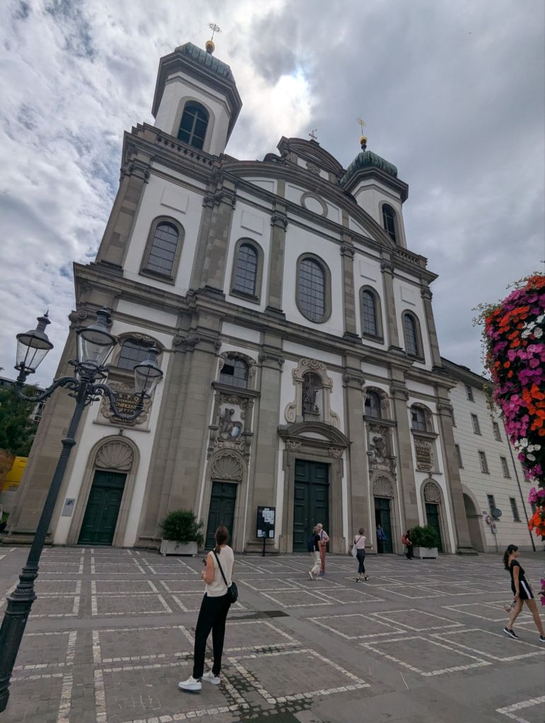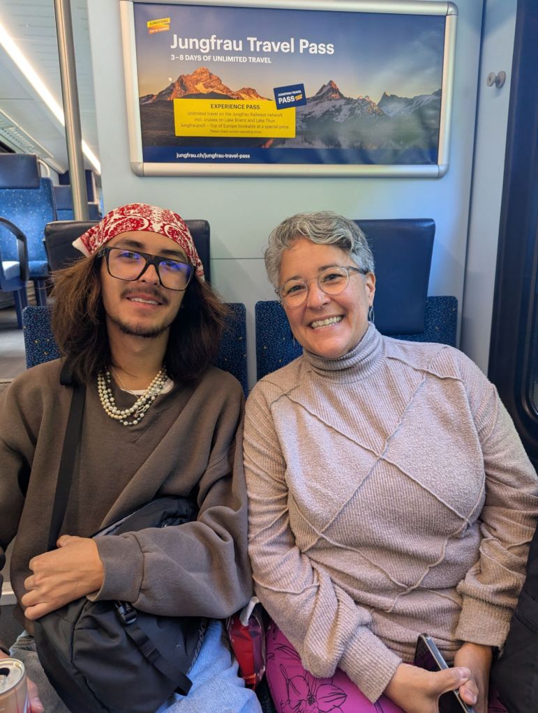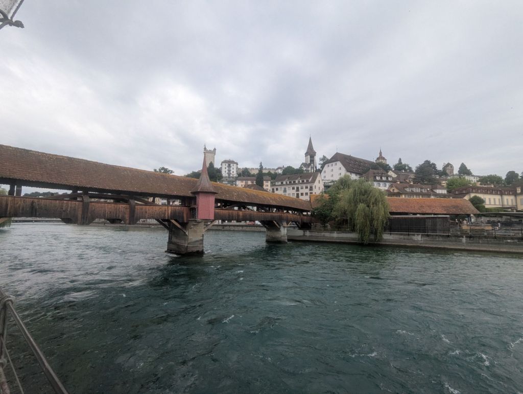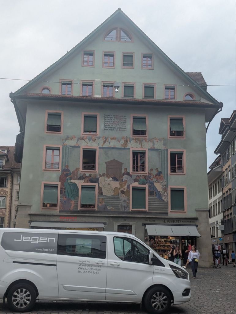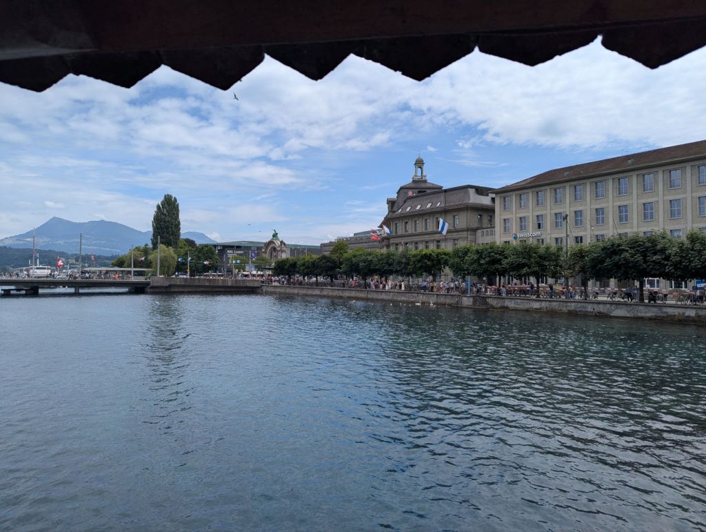 This morning proved to be another one of those mornings that builds resilience, a key mental health benefit of travel. Our plan was to catch the 9:30 am train from Lauterbrunnen to Interlaken, where we would change to a train to Luzern. Unfortunately, there was rail construction between Lauterbrunnen and Interlaken which meant that leg of our journey consisted of two trains and a bus. And sadly, that leg of the trip is already pretty crowded and chaotic, so we were wedged into our trains and bus with many other bedraggled, confused, and grumpy tourists. Nevertheless, we made it to Interlaken where we said goodbye to Cathy and Sam and boarded our blessedly peaceful train to Luzern.