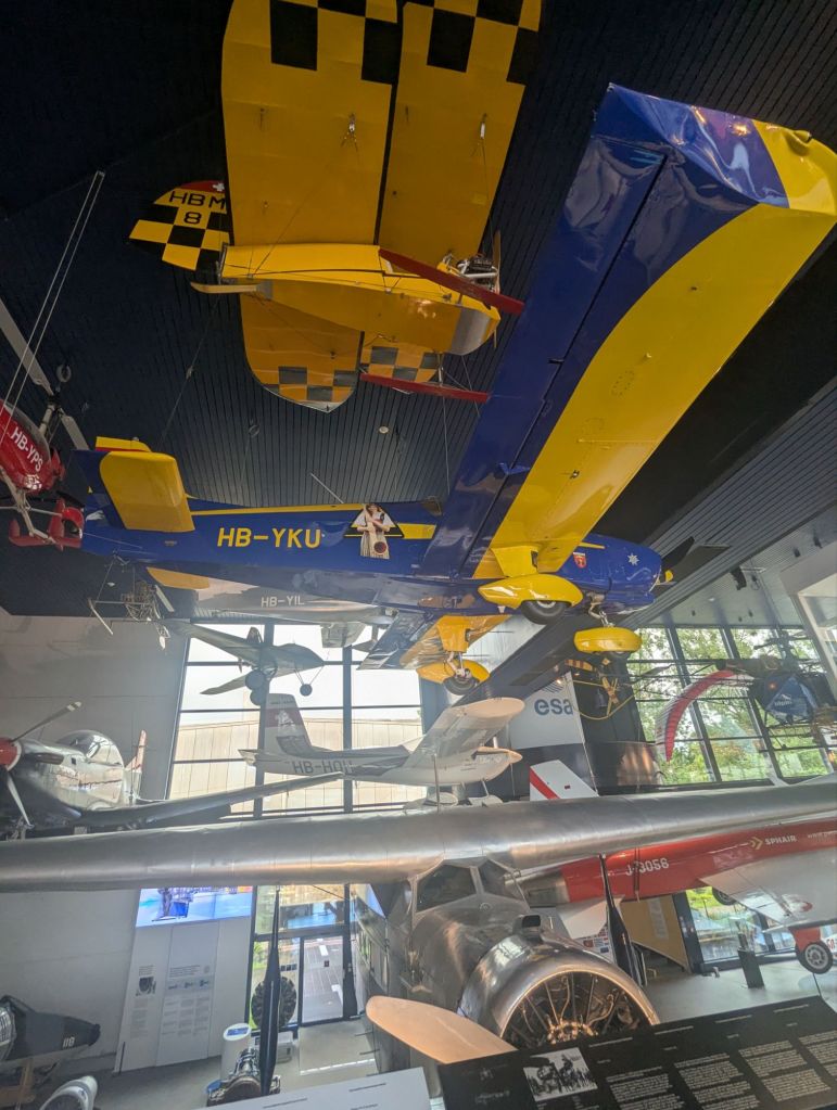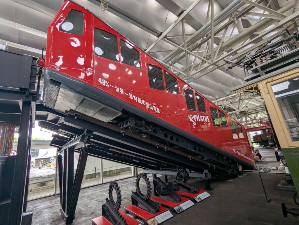 Our hotel reservation was for a beautiful hotel in Old Town, a perfect location for us to drop off our luggage and finish the stroll we started when we visited earlier for the Euros match. We strolled back through the covered wooden bridges and made a quick loop through the Jesuit church. We took a relatively brief detour through the Rosengart Collection of art, primarily featuring works by modernists Pablo Picasso, Paul Klee, and Marc Chagall, but with a few works by some of the Impressionists, as well. Neither of us are particularly partial to the Modernist art movement overall, but we both enjoy Chagall’s vivid, saturated works. We finished our walking tour along the Reuss River and then caught a bus to the Swiss Transport Museum.