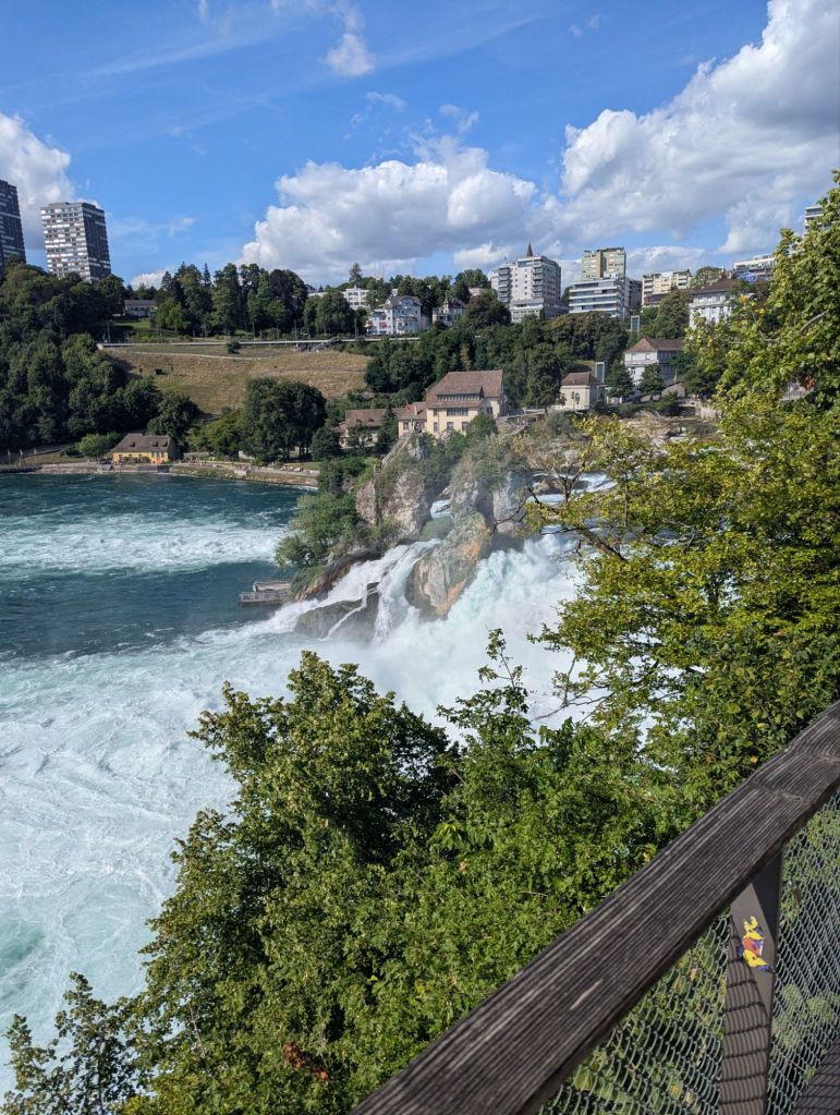 We got to the first station and we have been lucky for the most part in Switzerland to have ramps or escalators or elevators for most platform changes but this time we had to hoof it on a few sets of stairs but we made the connection. I looked up where the stamp location was and unfortunately this one was like Interlaken and was in a tourist info shop well into town and not by the train station. I googled how to get there and it recommended a stop by the Rhein falls in Shaffhausen which in general was fine as that’s all we really had time to see so we got off there. It was little more than a platform with no real station and Google recommended a path that I started to follow but quickly realized was more work that it was worth having made us scramble on several trains with our luggage all day. I went back to Becky and the luggage and we figured out the best route to get back to Zurich and the hotel. We had to make a quick trip to Shaffhausen station itself and change once again to a direct train to Zurich.